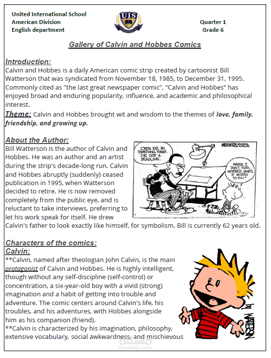 So, First, I searched about the characters and the author of the selection of their main book and started to build up my worksheet using Microsoft word and the information given about the author's background and made some search on the author and how he came up with his comics characters and why did he use them and what are the morals coming up from each comic they had in their course book and illustrating them using some website and after finishing the word file I saved it as a pdf file and done the same in all the word files I make..