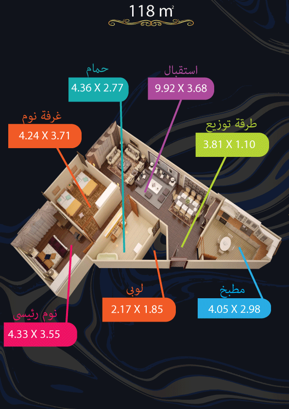 برشور يحتوى على انفوجرافيك يوضح التقسيم الداخلى للشقة