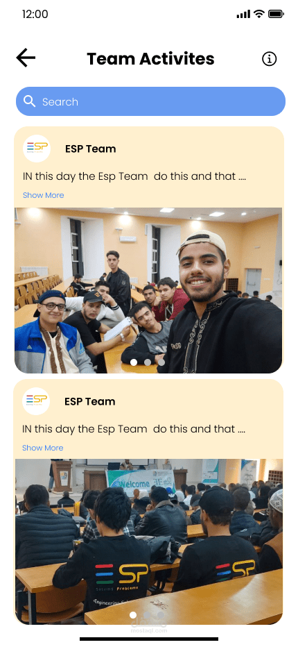 يحتوي التطبيق على قسم مخصص لـ"أنشطة الفريق"، يعرض تحديثات فورية حول المشاريع الجارية والأنشطة المختلفة التي تقوم بها الفرق.