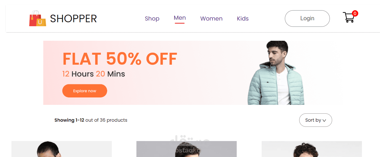 A responsive e-commerce website for selling clothes, where you can reserve products and add them to the cart. It consists of four pages, including sections for men, women, children, and best-sellers