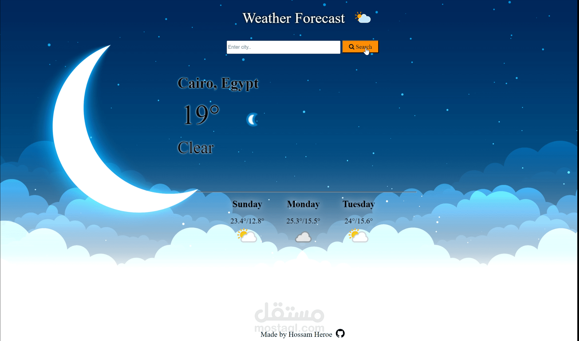 A Simple vanilla JavaScript project that utilizes WeatherAPI to show the weather condition depending on the city searched for in search bar.