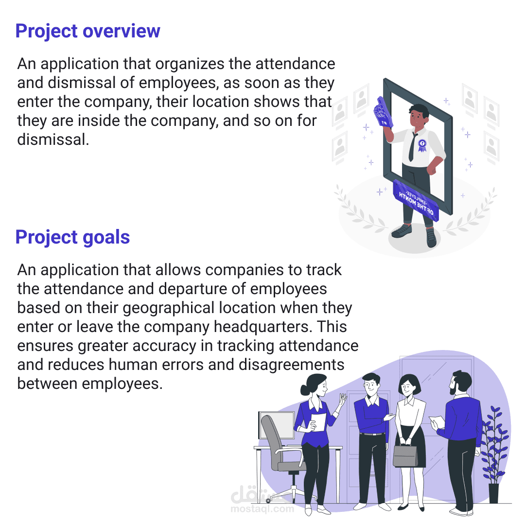 إشعارات ذكية: تذكير الموظفين بوقت الحضور والانصراف، والتنبيه في حالة التأخير.