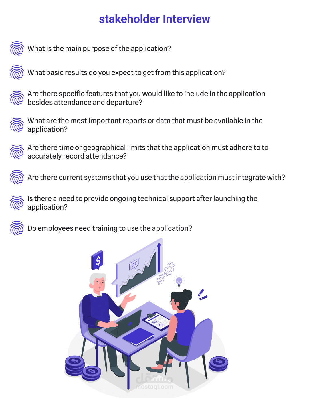 بدأت العملية بفهم عميق لاحتياجات المستخدمين والشركات التي تستخدم أنظمة تتبع دوام الموظفين. تم التركيز على الفكرة الأساسية للتطبيق وهي استخدام تقنية البصمة لتسجيل الحضور والمغادرة، مع مراعاة المرونة والبساطة في الاستخدام اليومي.