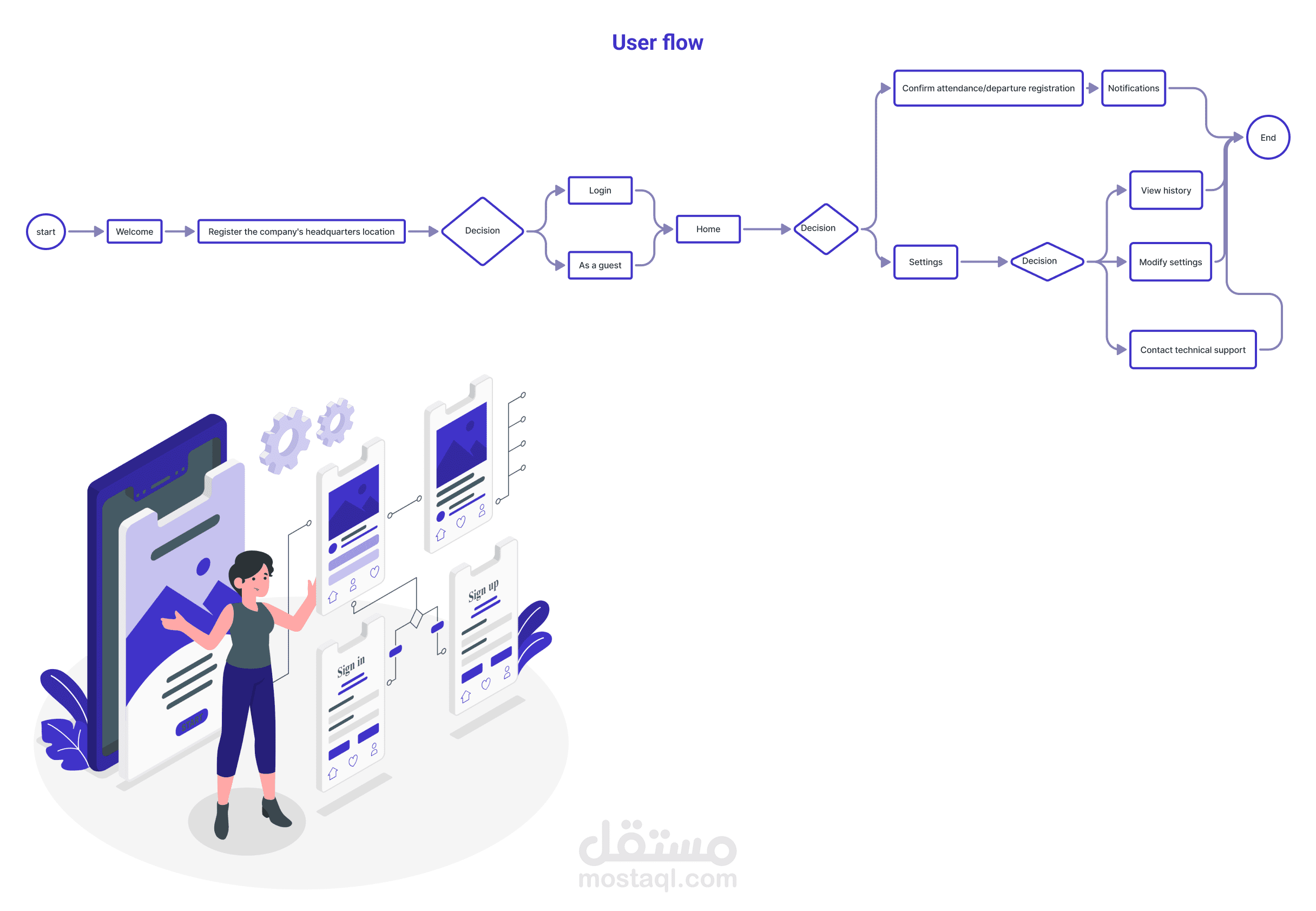 قمت بتصميم خرائط تدفق المستخدمين لتحديد كل خطوة يقوم بها المستخدم داخل التطبيق. هذه الخرائط ساعدتني على تحسين تجربة المستخدم لتكون سلسة وبديهية، مما يضمن سهولة التنقل والوصول إلى جميع الميزات بسهولة.