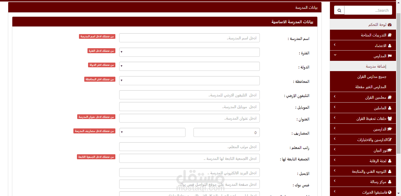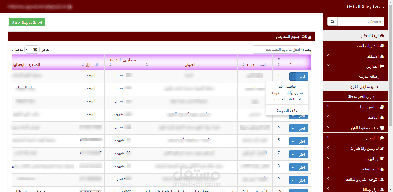 عبارة عن سيستم كامل لمدارس القران الكريم من ادخال بيانات الطلاب والمعلمين والعاملين بالمدارس والمناهج ومدارس القران والانشطة التابعة لجمعية رعاية الحفظة وكذالك نظام مالي واداري خاص بالجمعية ومدارس القران