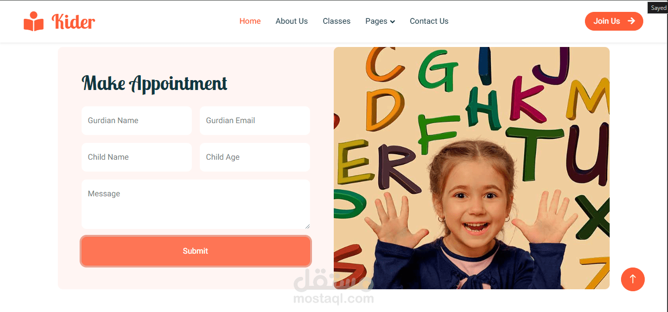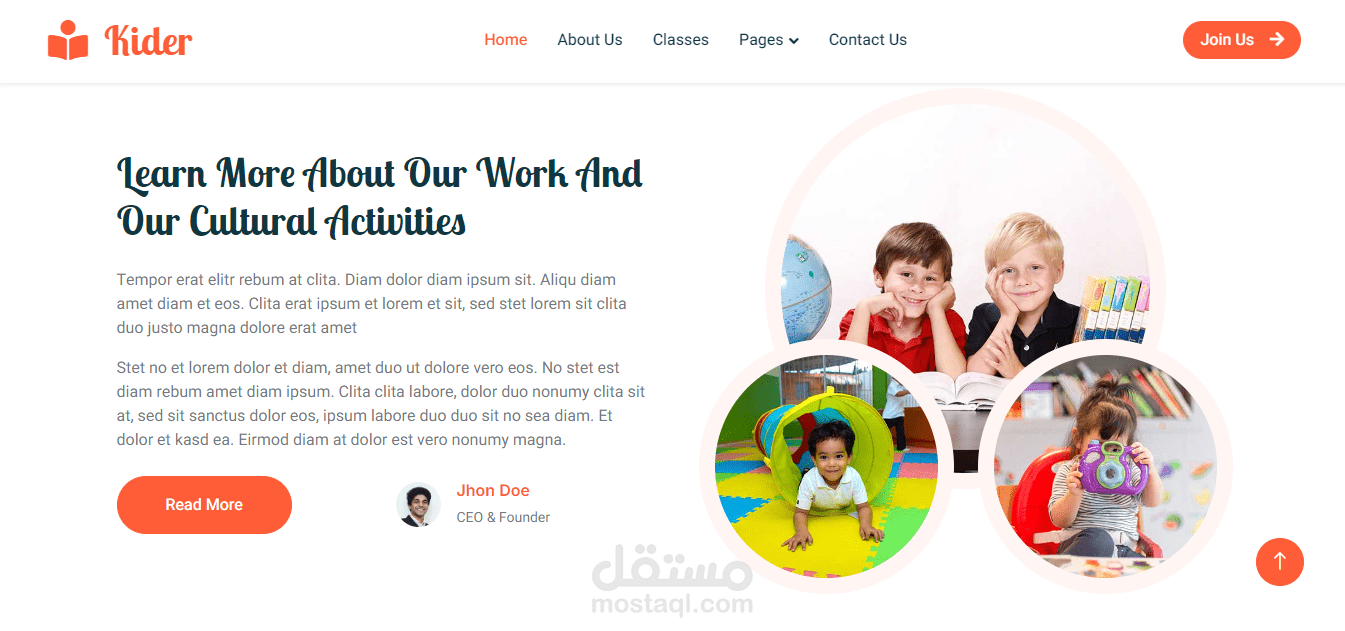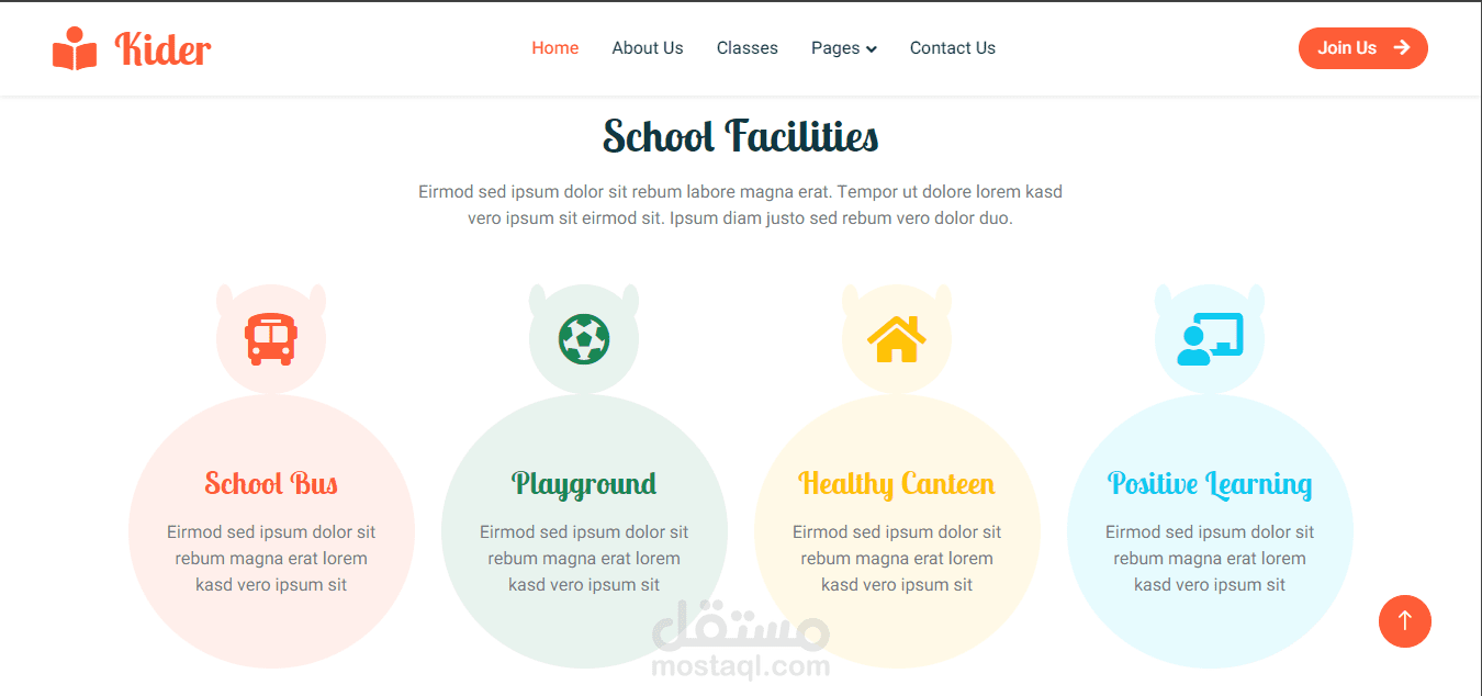 - صفحة رئيسية تحتوي على كل الاقسام المدكورة في الاعلى