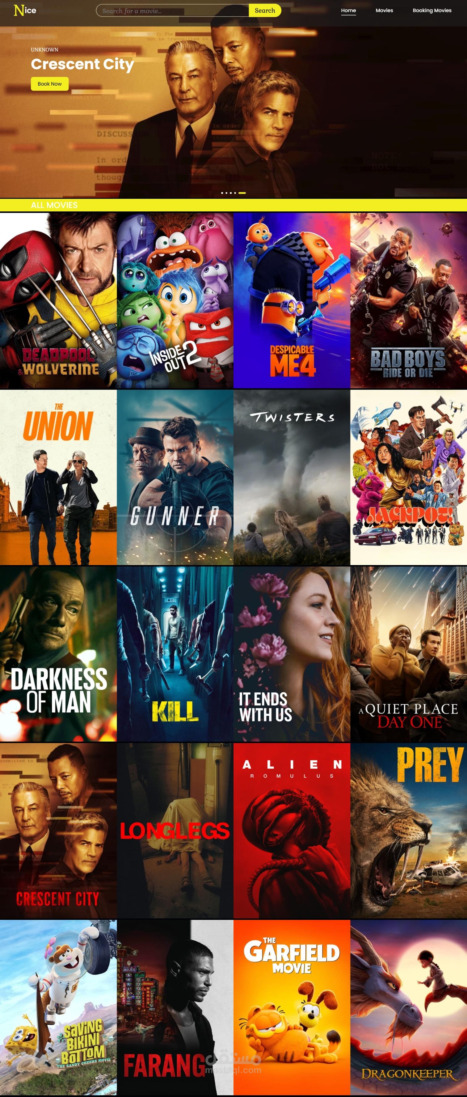 • A movie website that allows users to browse films, view ratings as circular progress bars, and simulate ticket bookings. The website includes