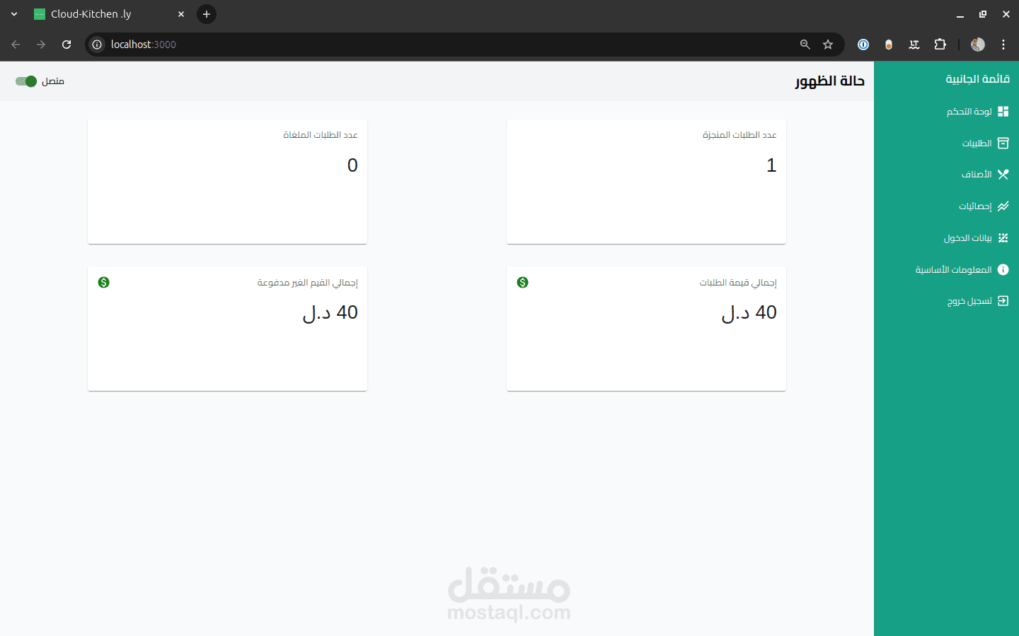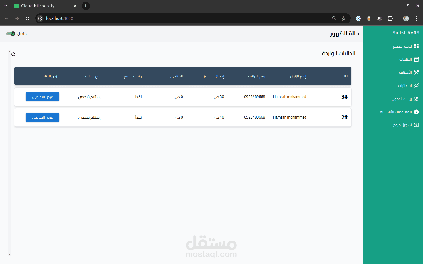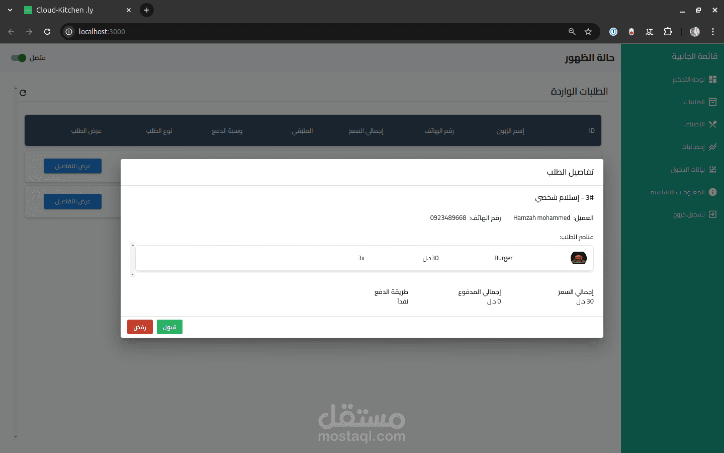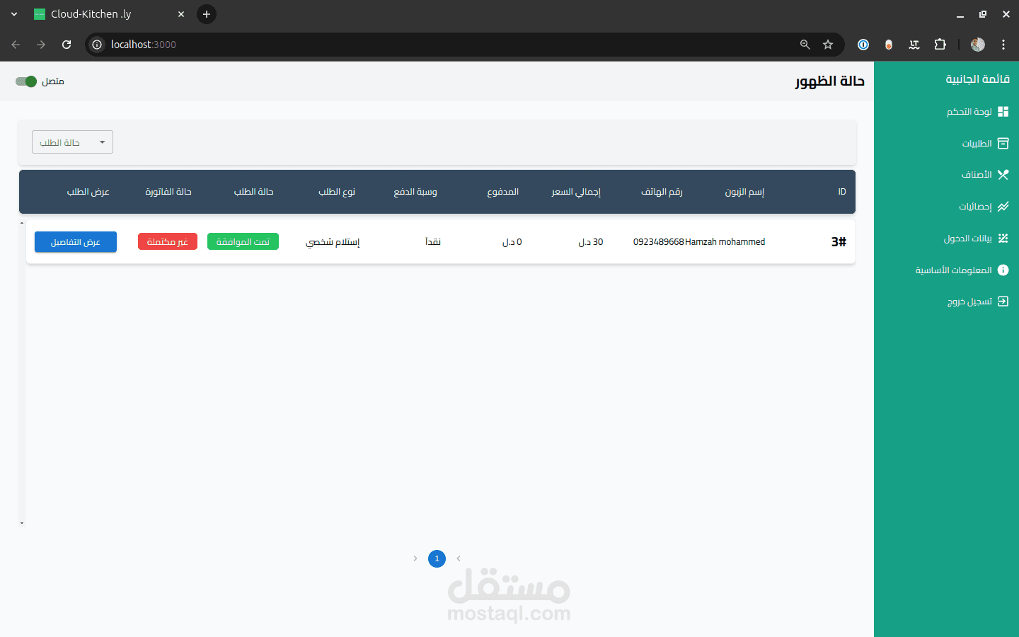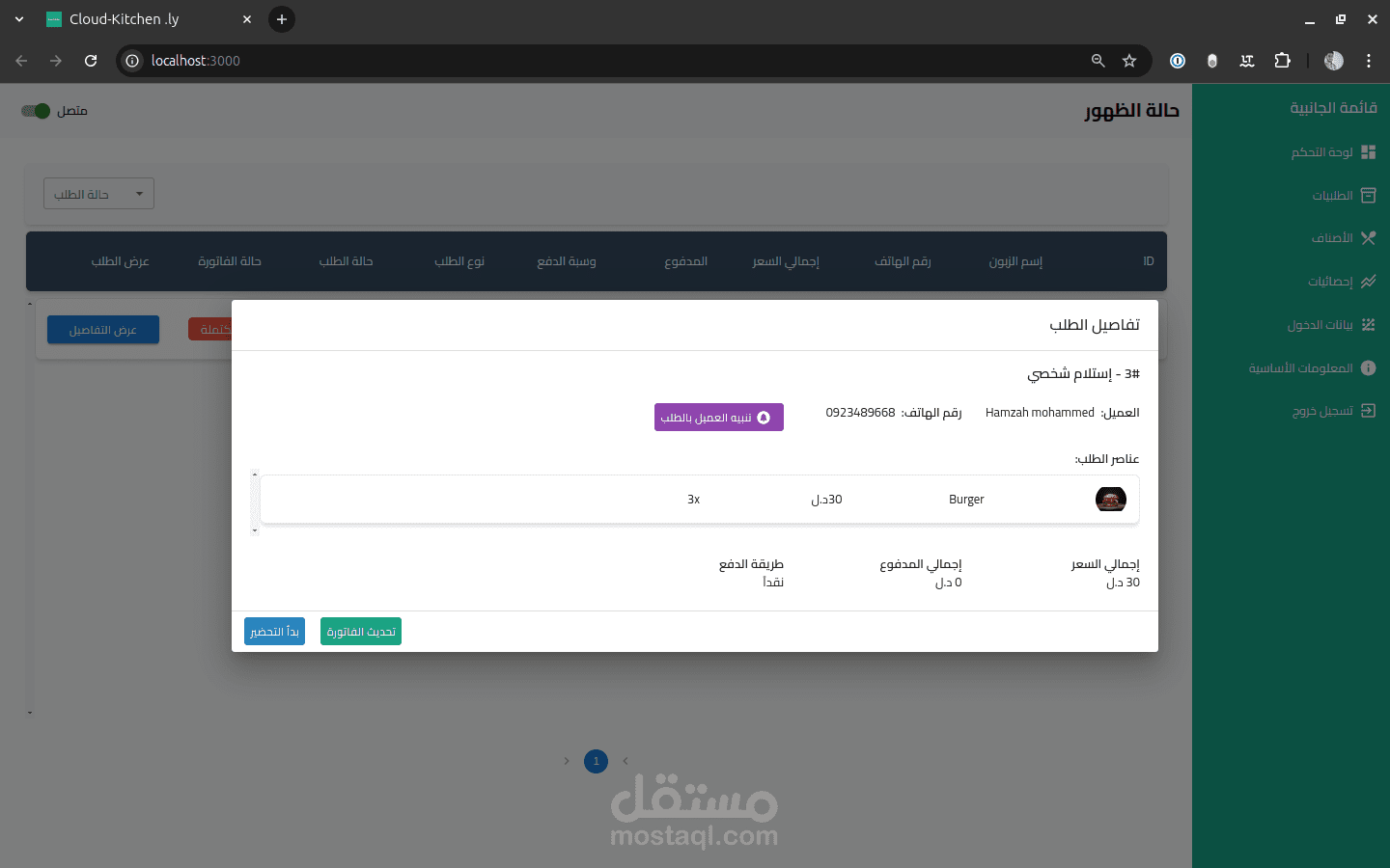 based producers. - Designed and implemented real-time order tracking, electronic paymentintegration such as “- إدفعلي Edfali”, and data visualization for order statistics. - Managed user