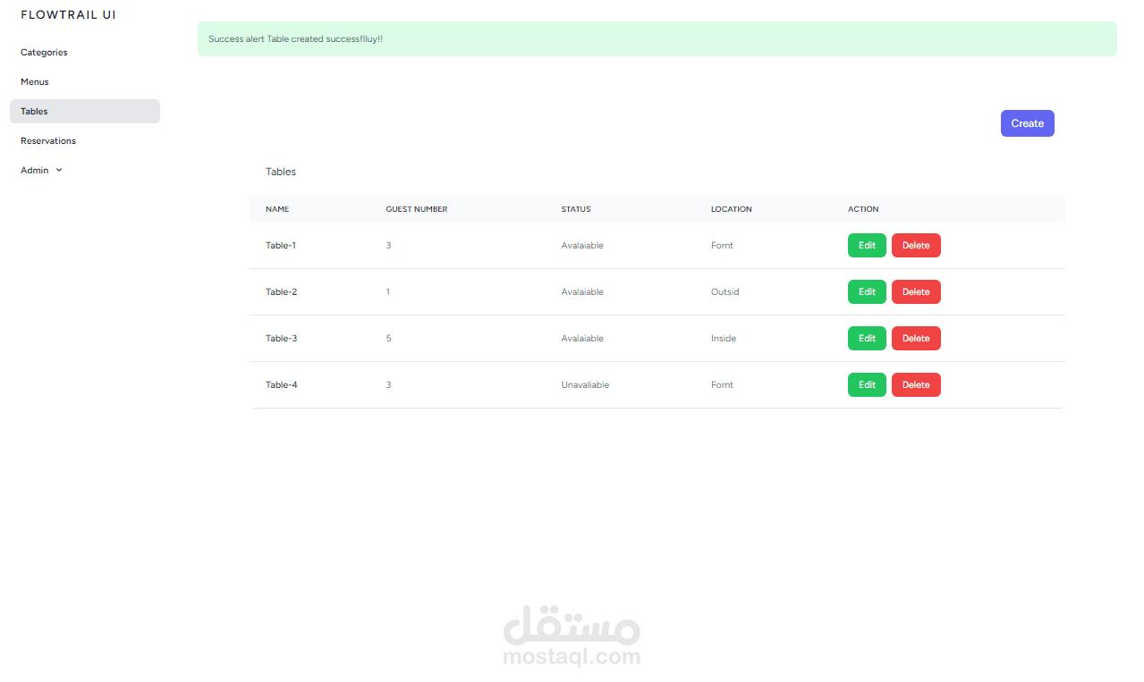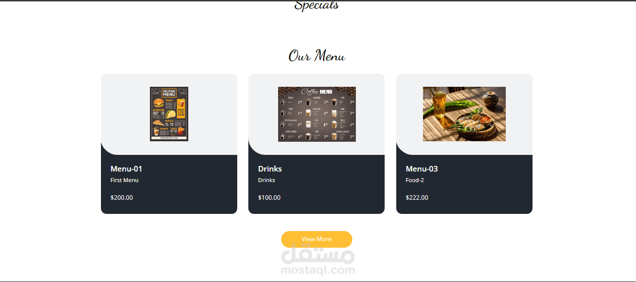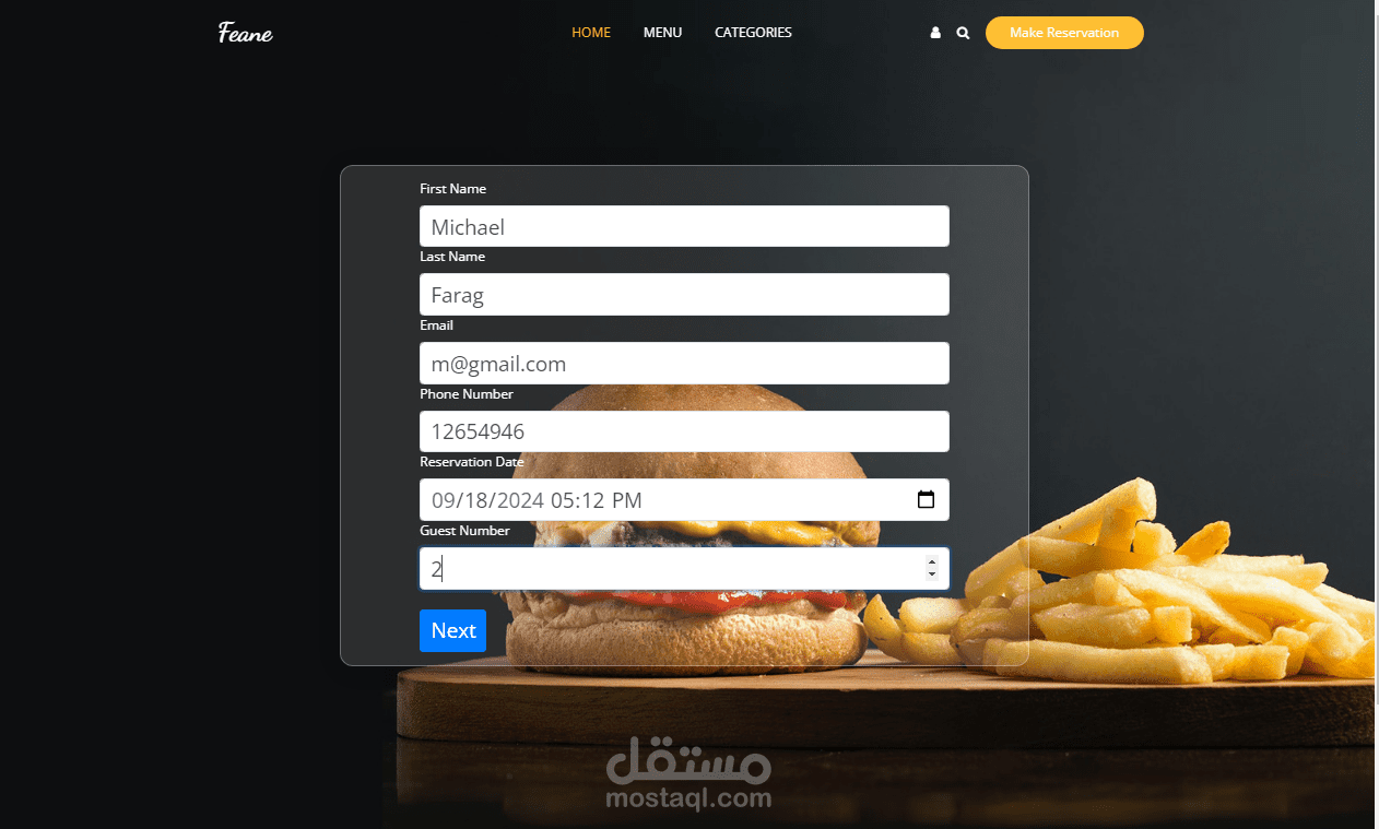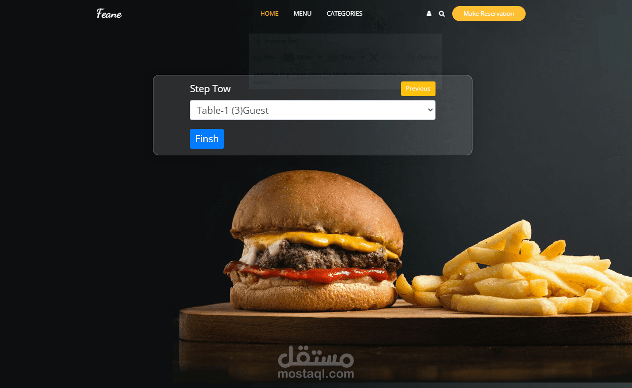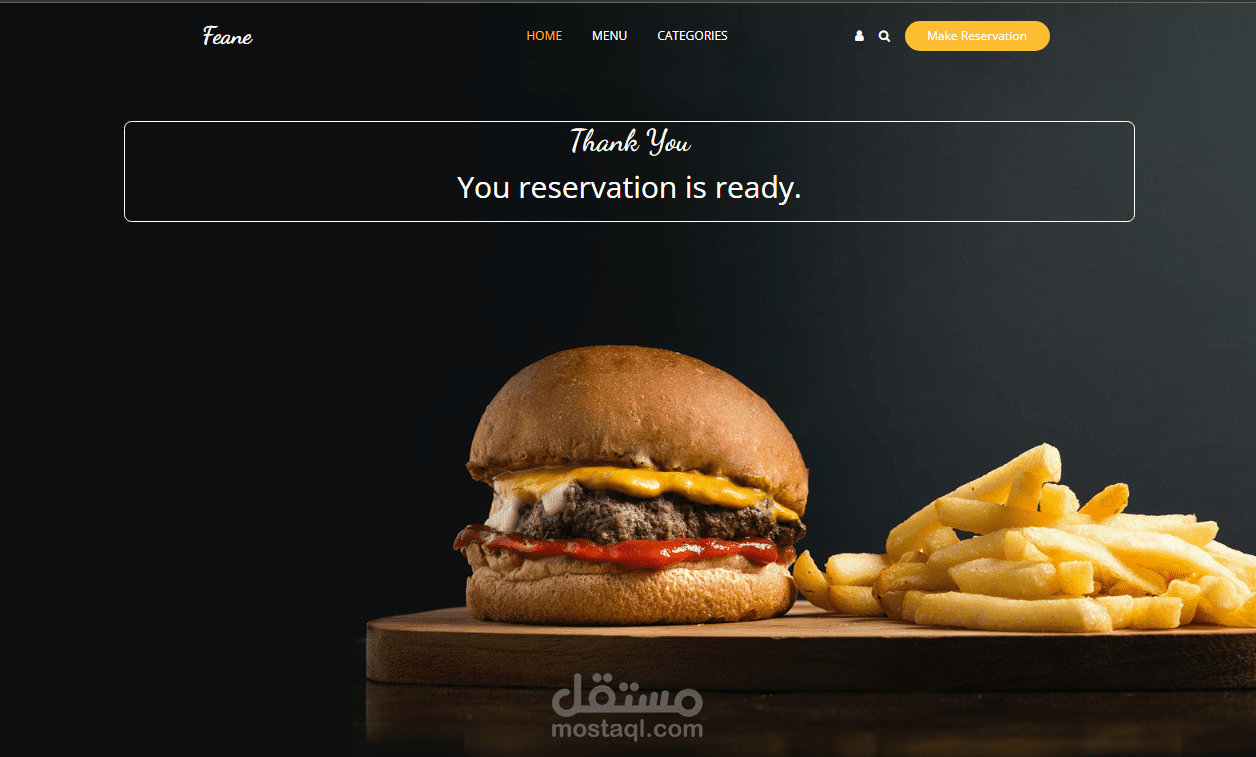 موقع لمطعم يعرض اصناف الطعم وقوائم الطعام مع امكانية حجز طاولات في التاريخ المحدد او التواريخ المتاحه
