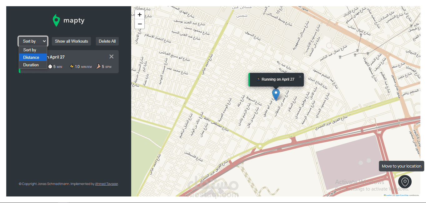 تطبيق ويب لتتبع وحفظ وادارة تدريباتك ورؤيتها على الخريطة