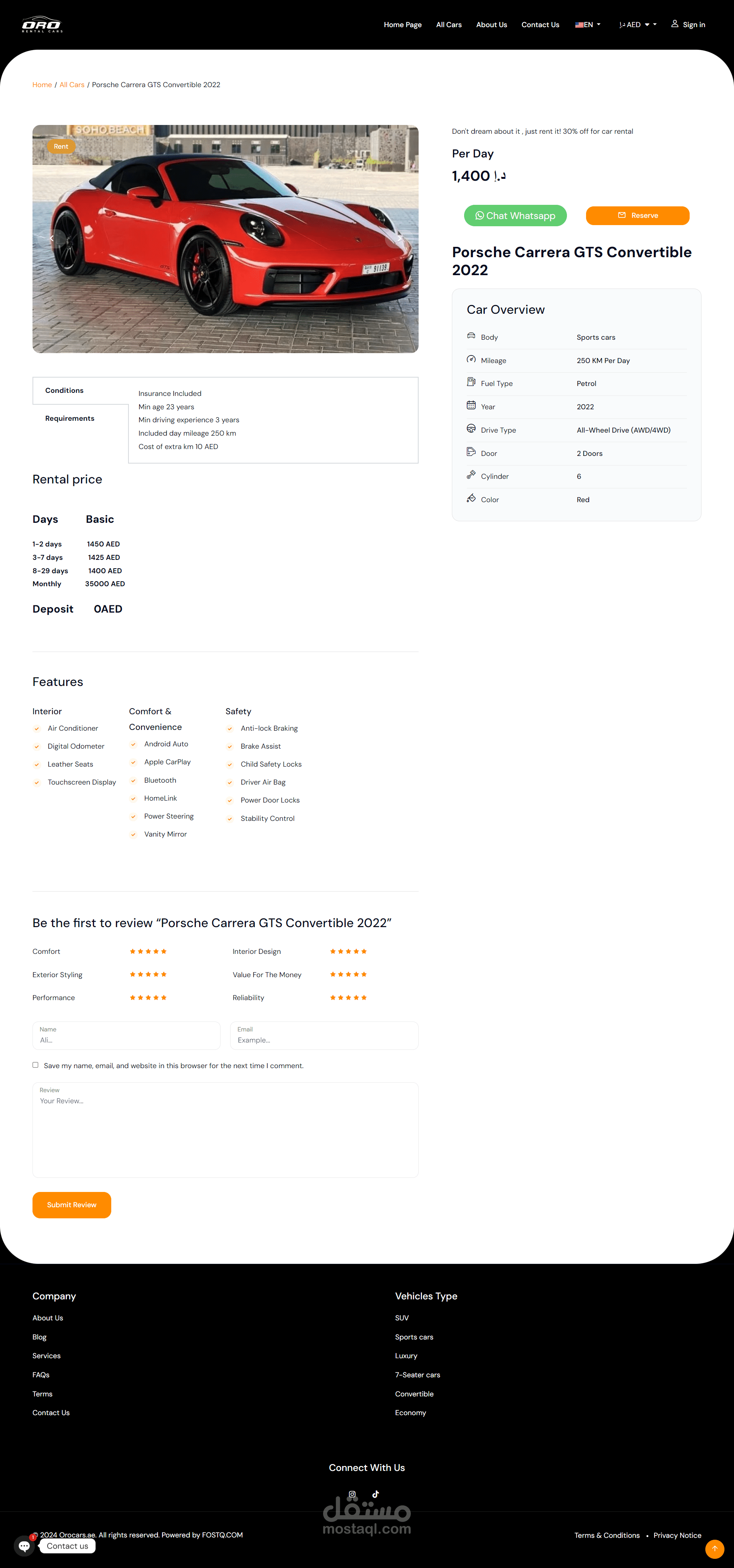 Oro Cars هو موقع إلكتروني متخصص في تأجير السيارات الفاخرة في الإمارات العربية المتحدة. تم تصميم الموقع ليكون سهل الاستخدام ومتاحًا باللغتين العربية والإنجليزية، مع توفير واجهة سلسة لعرض السيارات المتاحة للتأجير. الموقع يتميز بتصميم متجاوب، يعرض جميع التفاصيل والمميزات الخاصة بكل سيارة بطريقة جذابة. كما يتضمن نظام حجز بسيط وآمن لراحة العملاء.
