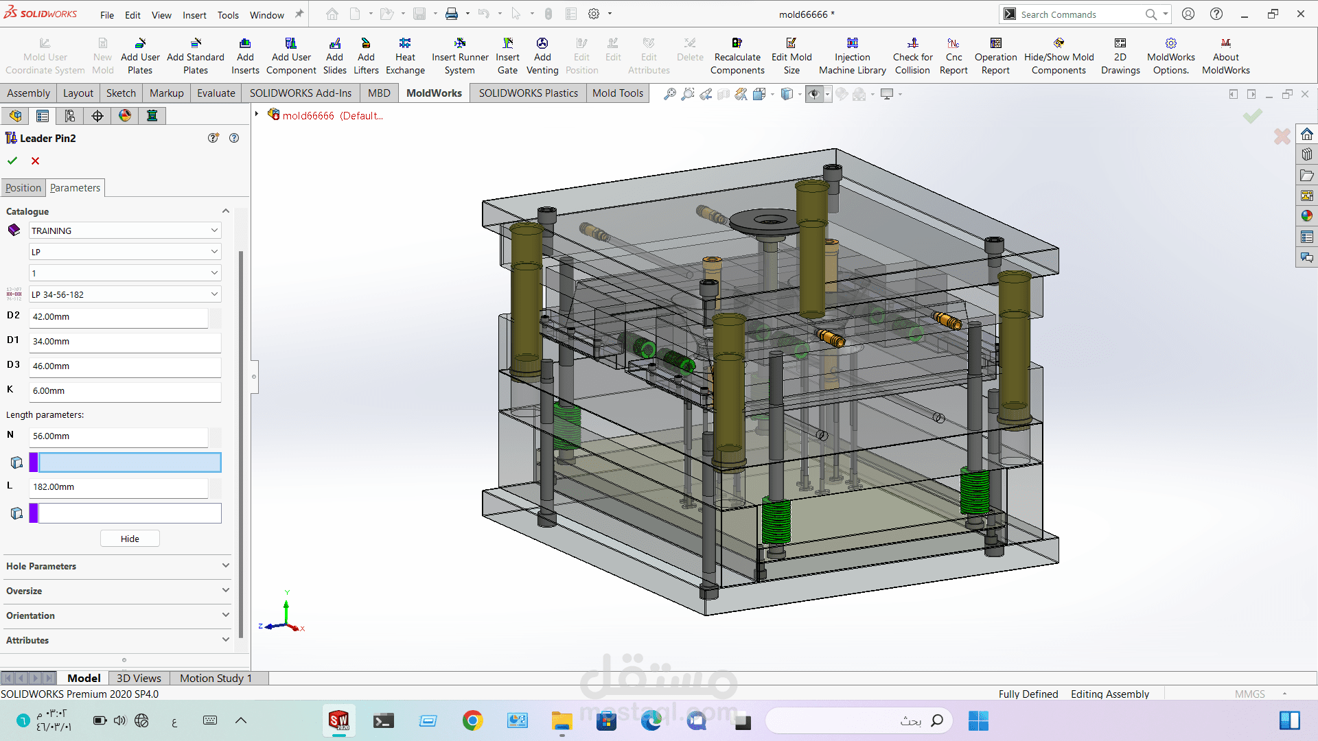 انا استطيع تصميم قالب حقن بلاستيك باستخدام برنامج سوليدووركس Solidworks وفق المعايير الهندسية الصحيحة لكل انظمة القالب مثل نظام التبريد ونظام الطرد وقنوات التنفيس مع مراعات مقاسات وابعاد اجزاء القالب كلها