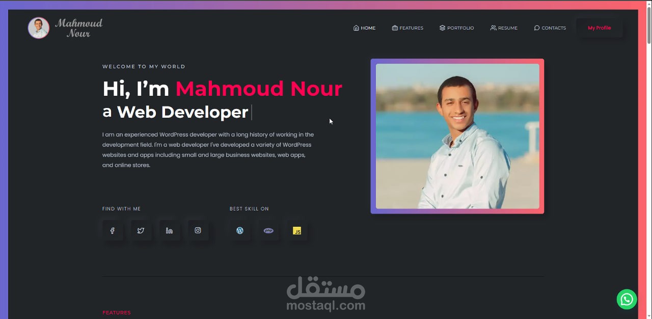 لقد قمت بتطوير موقع ويب متكامل باستخدام WordPress يلبي احتياجات العملاء من خلال تصميم أنيق وسهل الاستخدام. يتميز الموقع بتجربة مستخدم سلسة وسرعة تحميل ممتازة، مع الاهتمام بالتفاصيل لتوفير واجهة مستخدم مخصصة وعصرية.