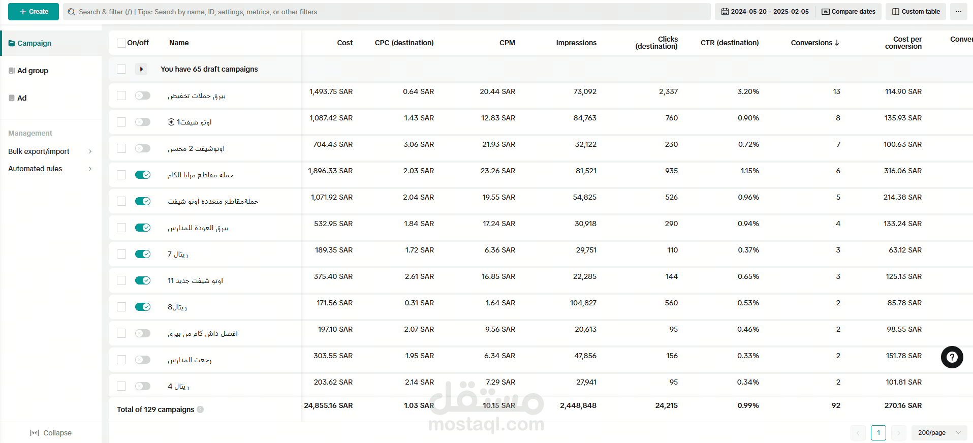 ضبط استراتيجيات الميزانية: لتحقيق أعلى كفاءة إعلانية.