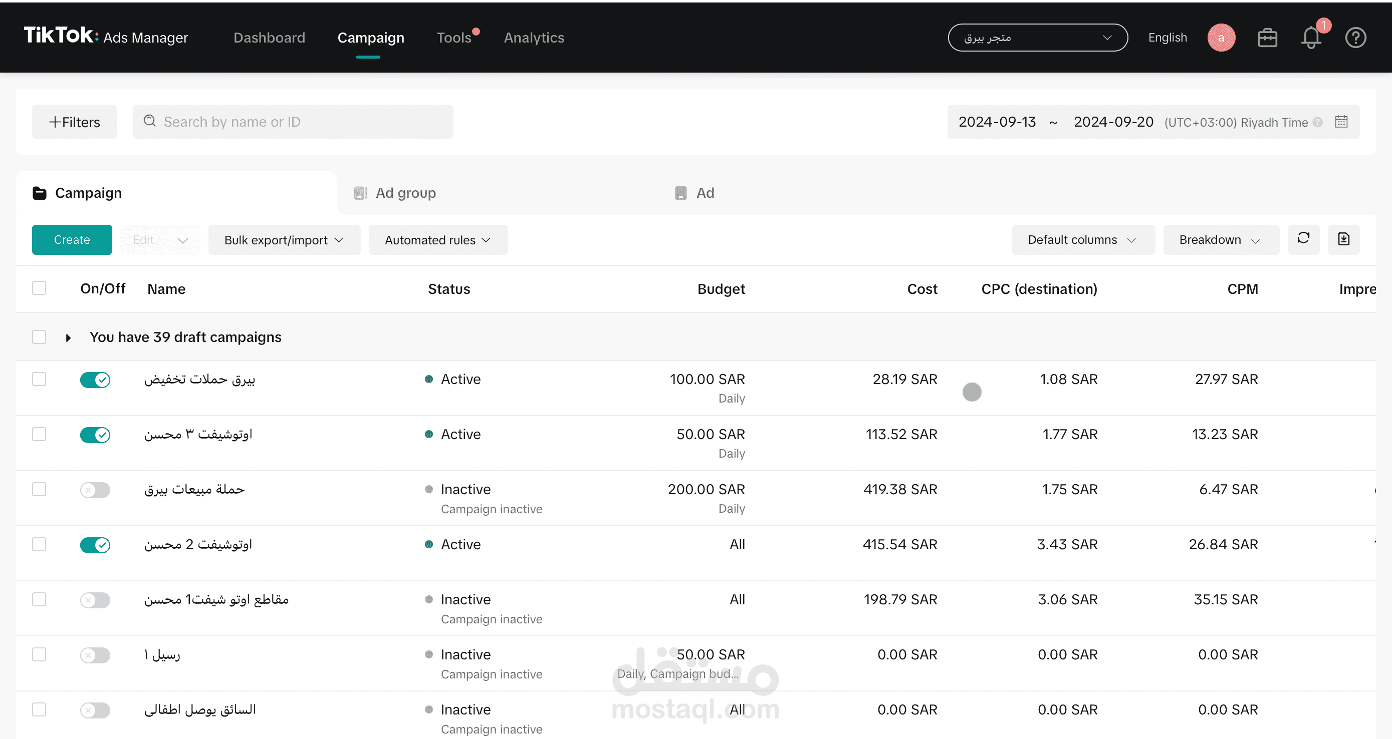 إدارة شاملة لحملات TikTok الإعلانية: إعداد، تشغيل، ومتابعة الأداء.