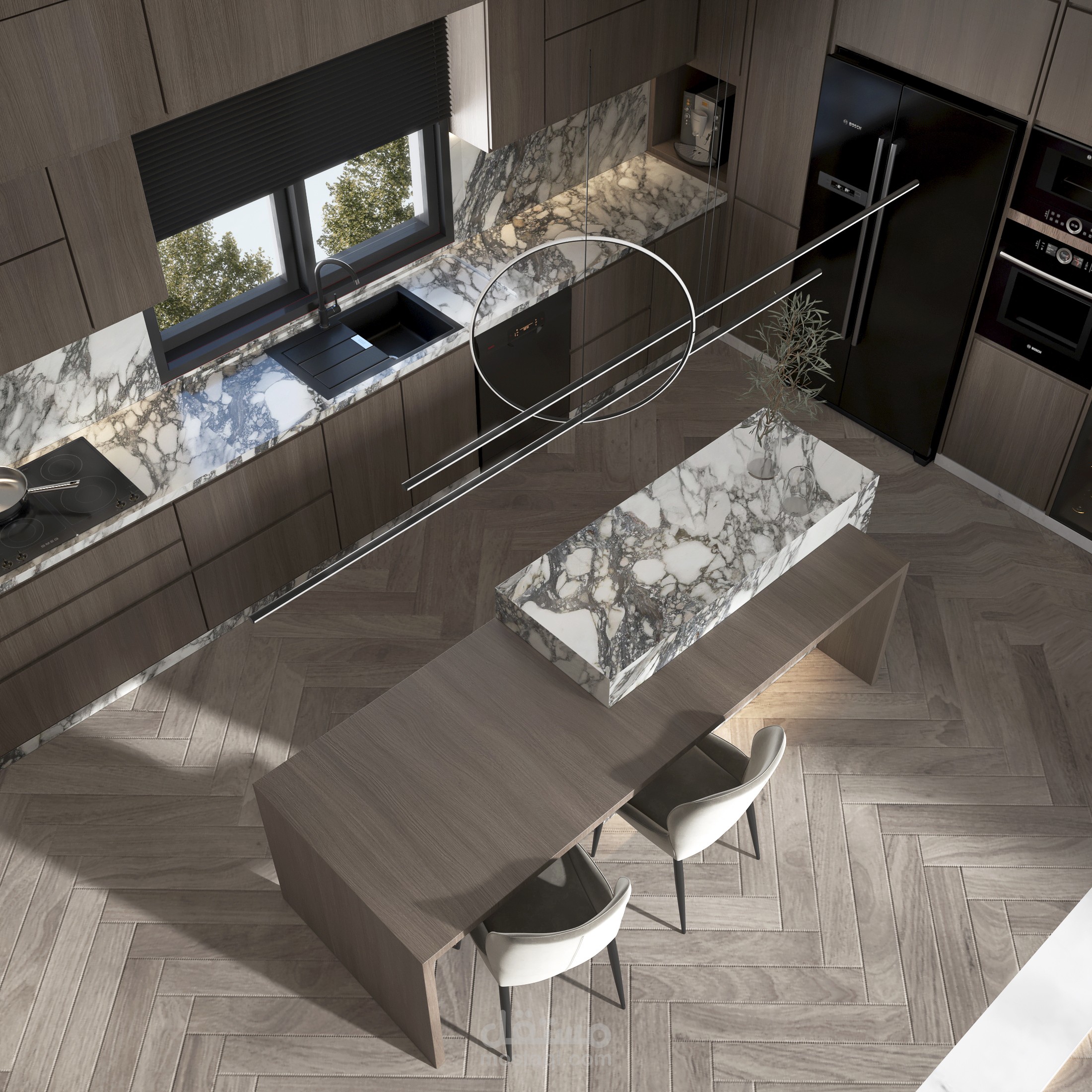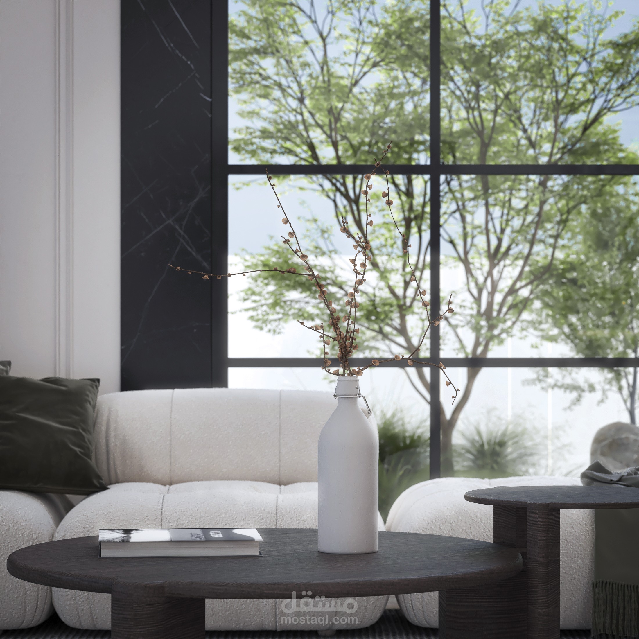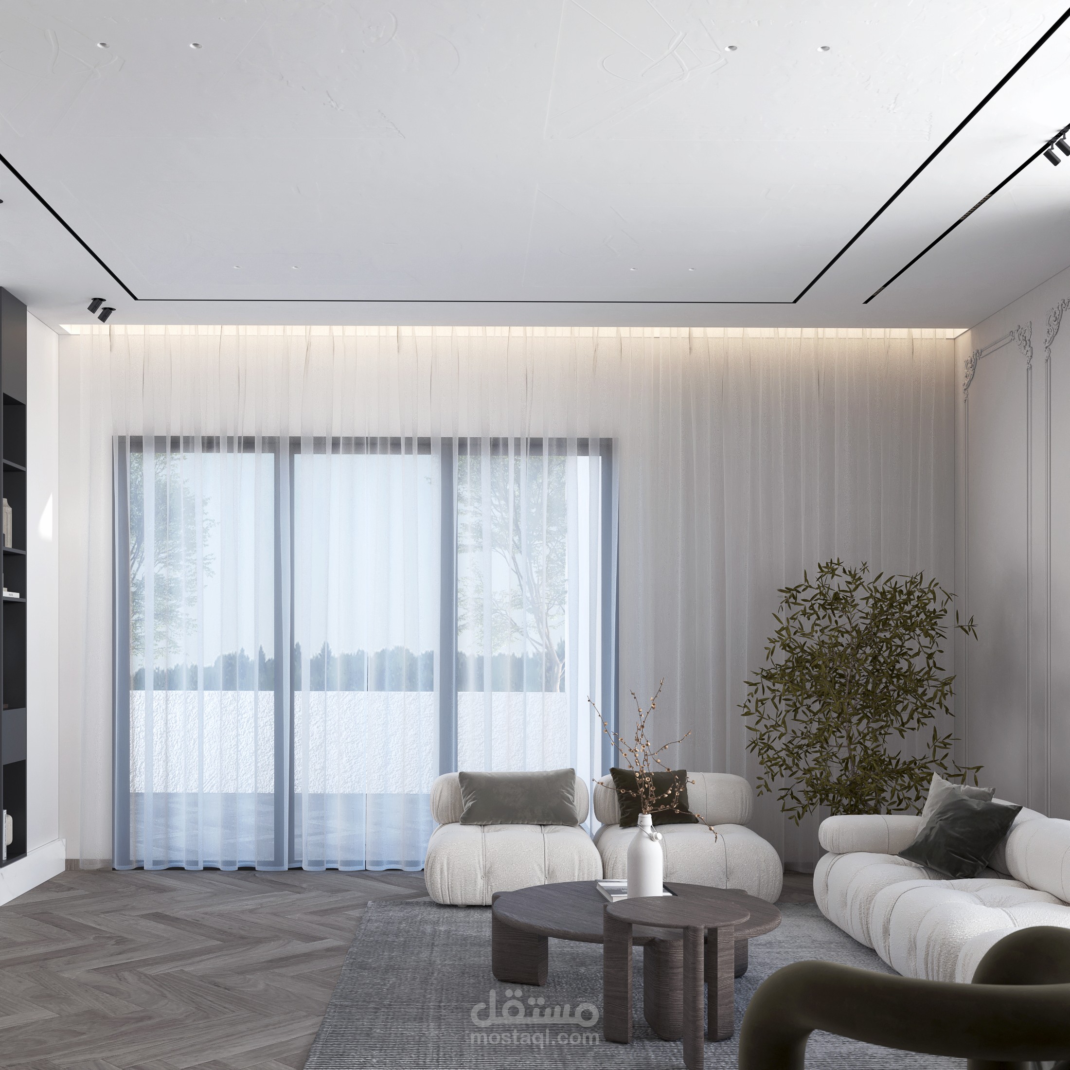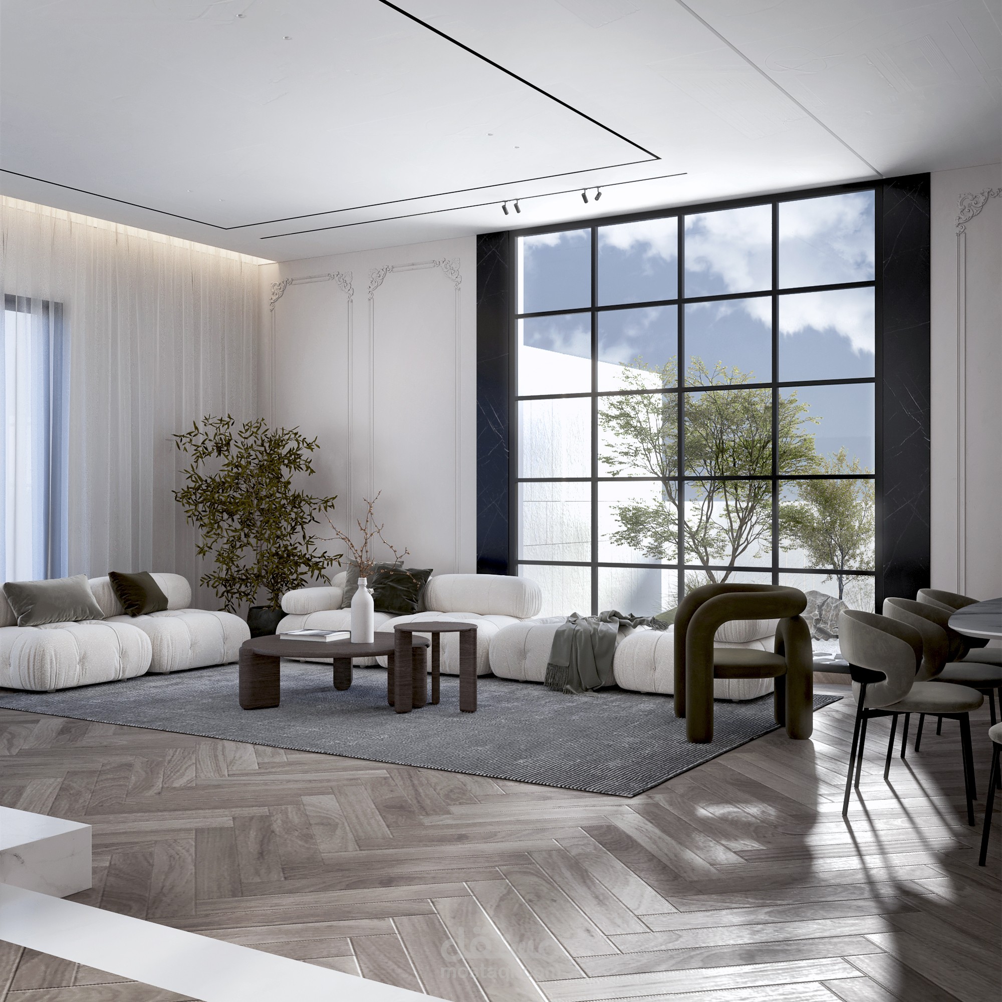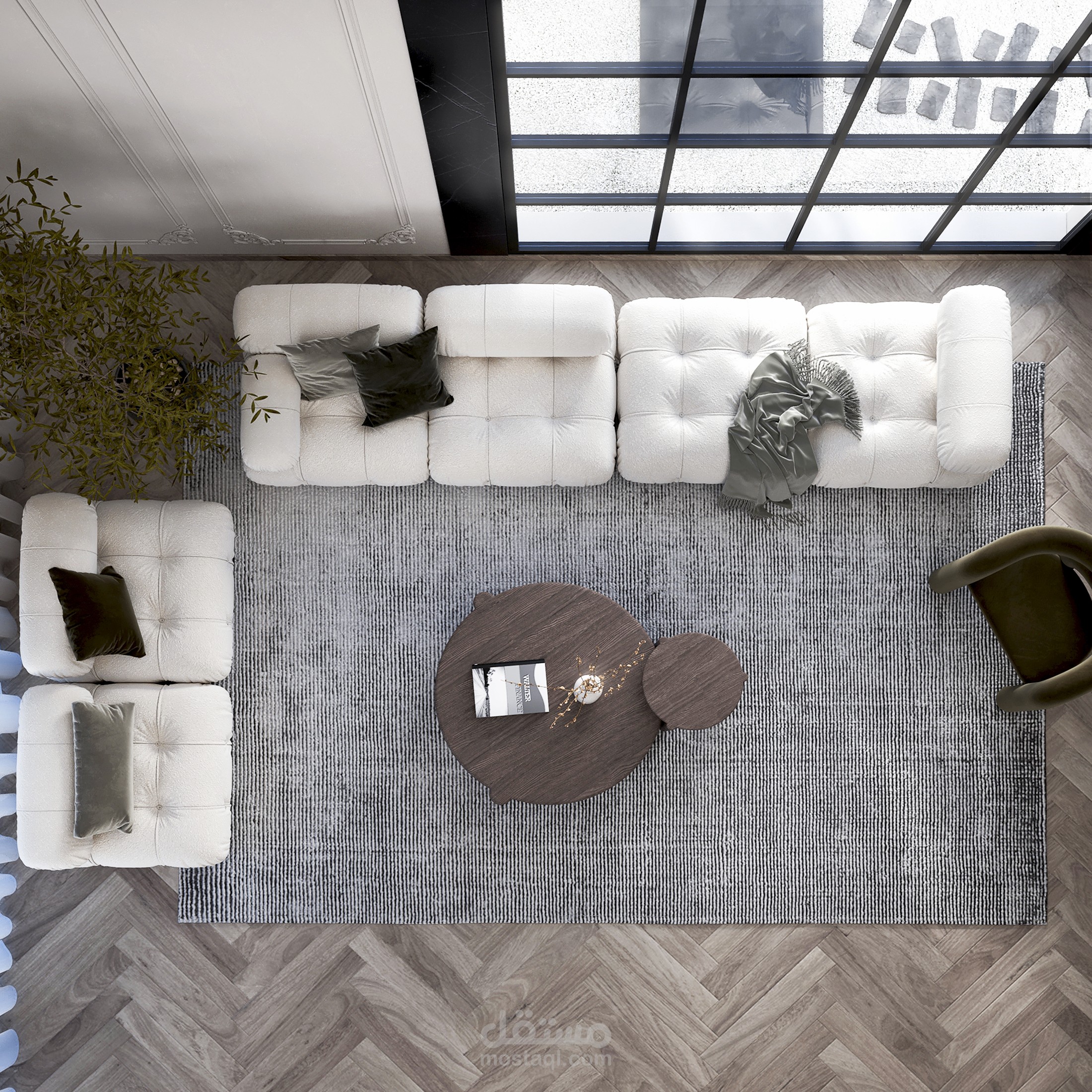 تصميم نيوكلاسيك لمطبخ ومنطقة جلوس وسفرة