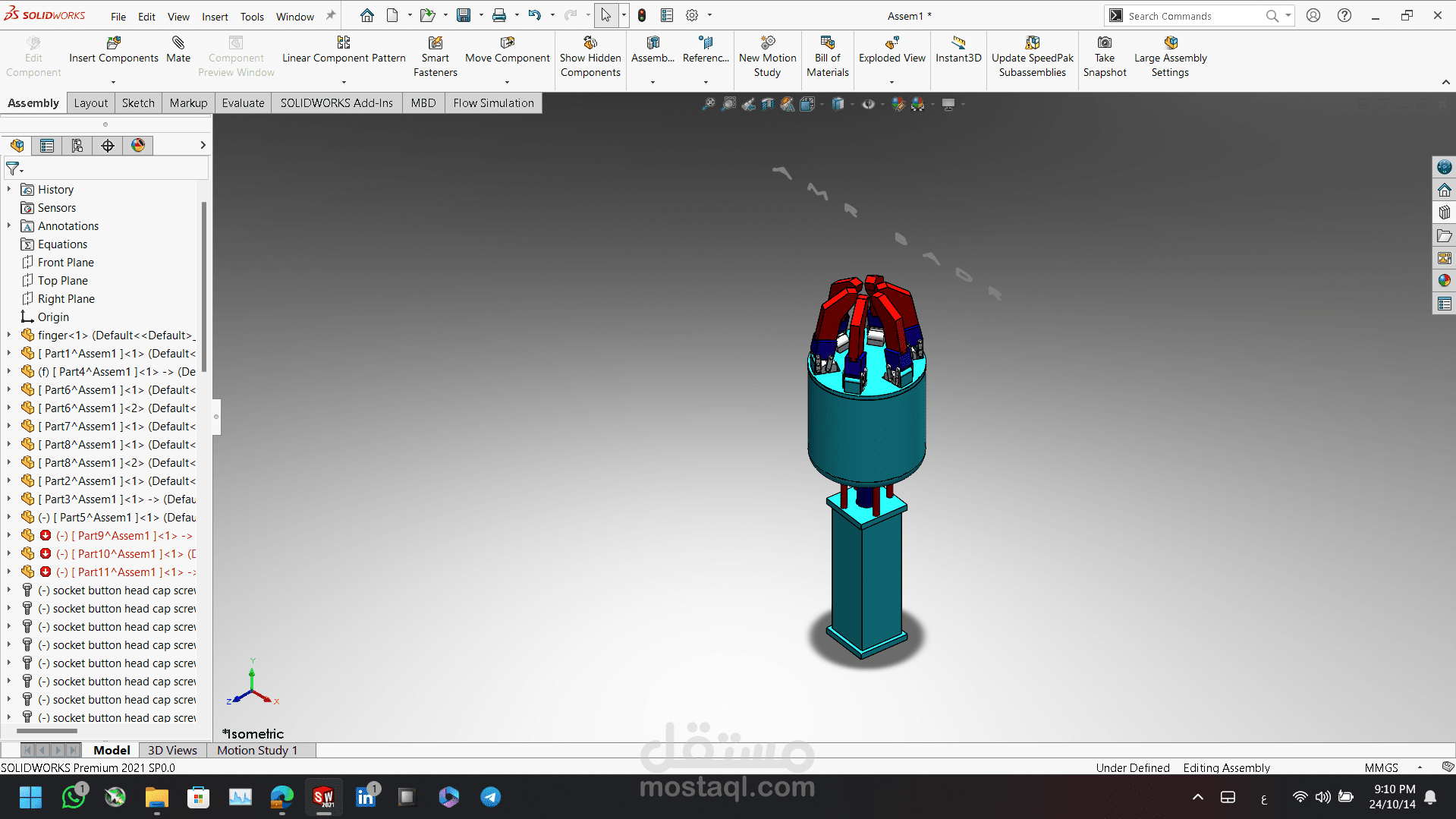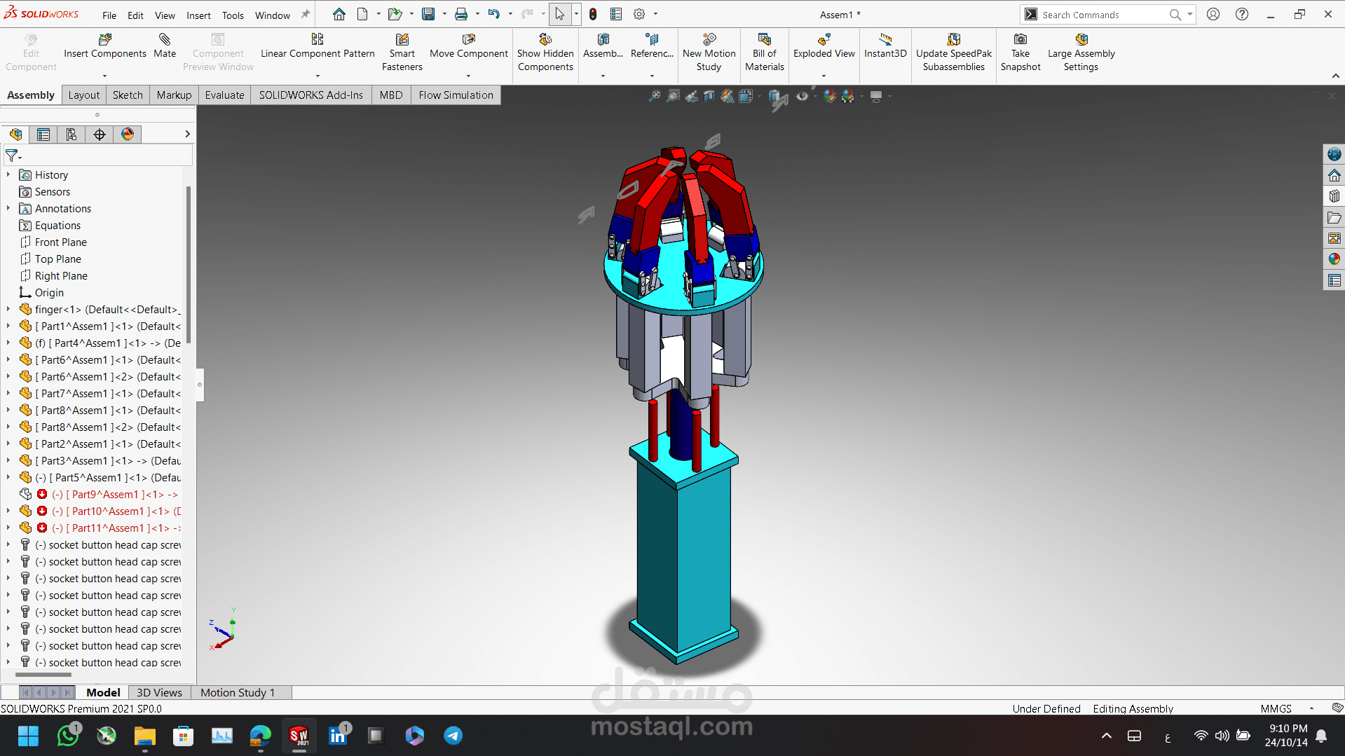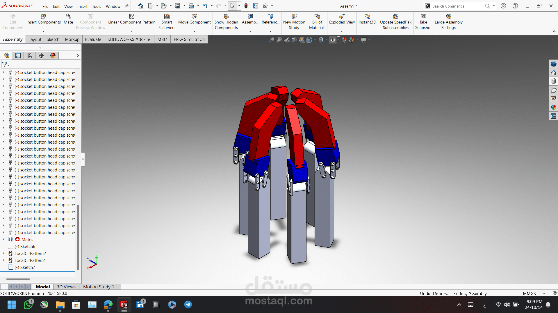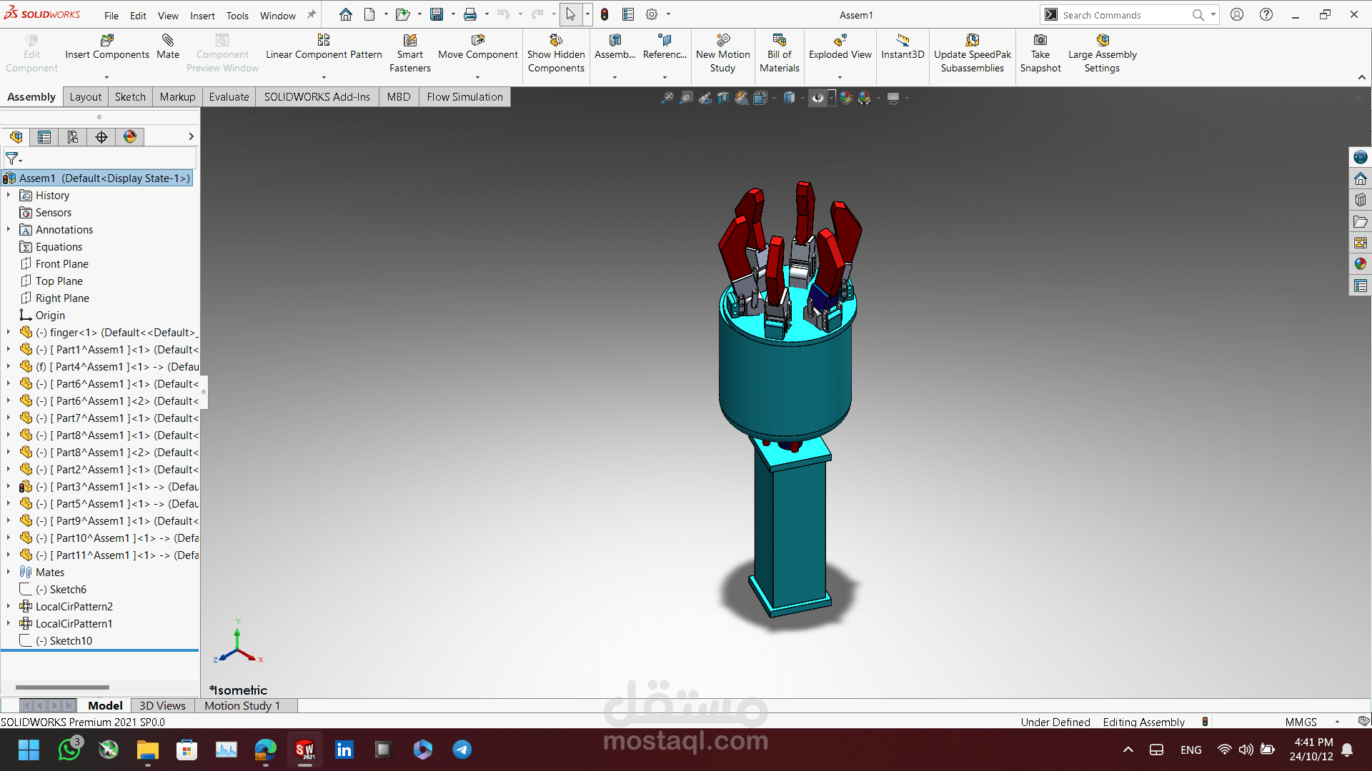 تتكون من قاعدة ثابتة، ذراع متحركة، ومخلب يتكون من أصابع متعددة. يمكن للذراع الدوران بزاوية 360 درجة، ويمكن للأصابع الفتح والإغلاق بشكل مستقل.