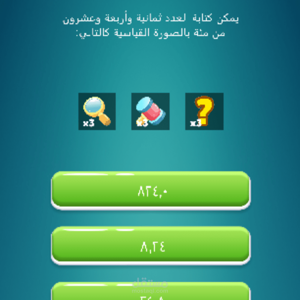 أدوات مساعدة: مثل تخطي السؤال، تغيير السؤال، وإظهار الإجابة الصحيحة لزيادة التفاعل.