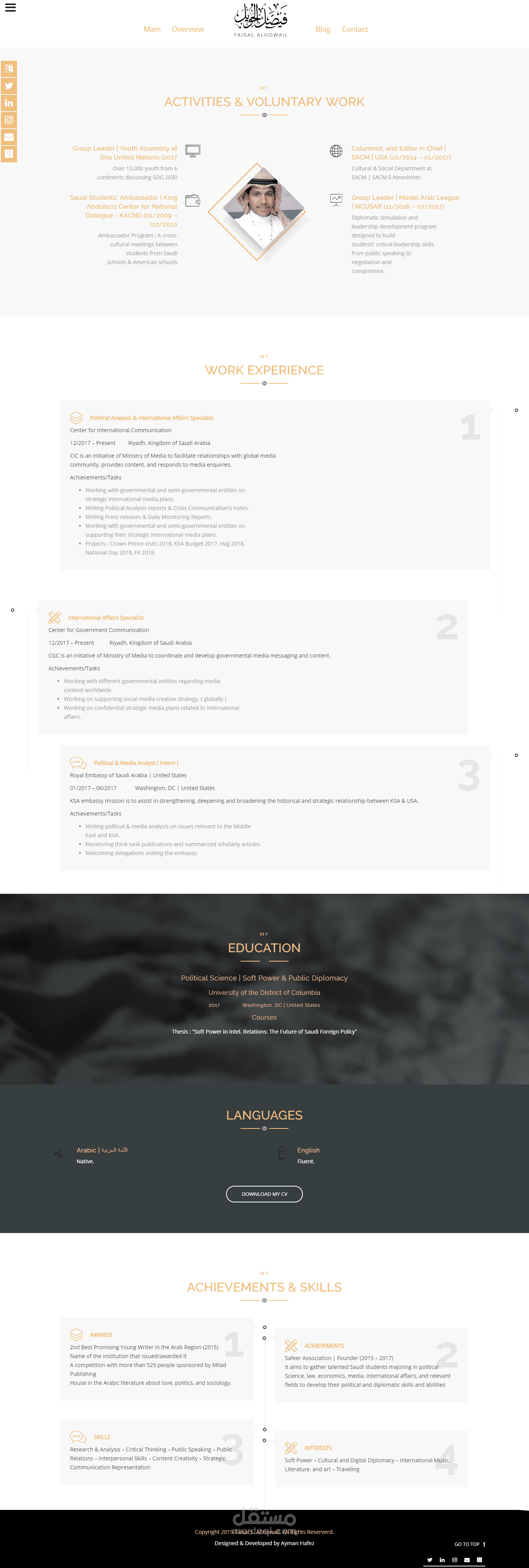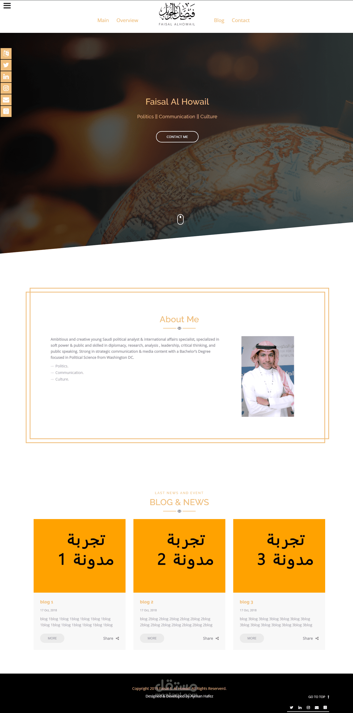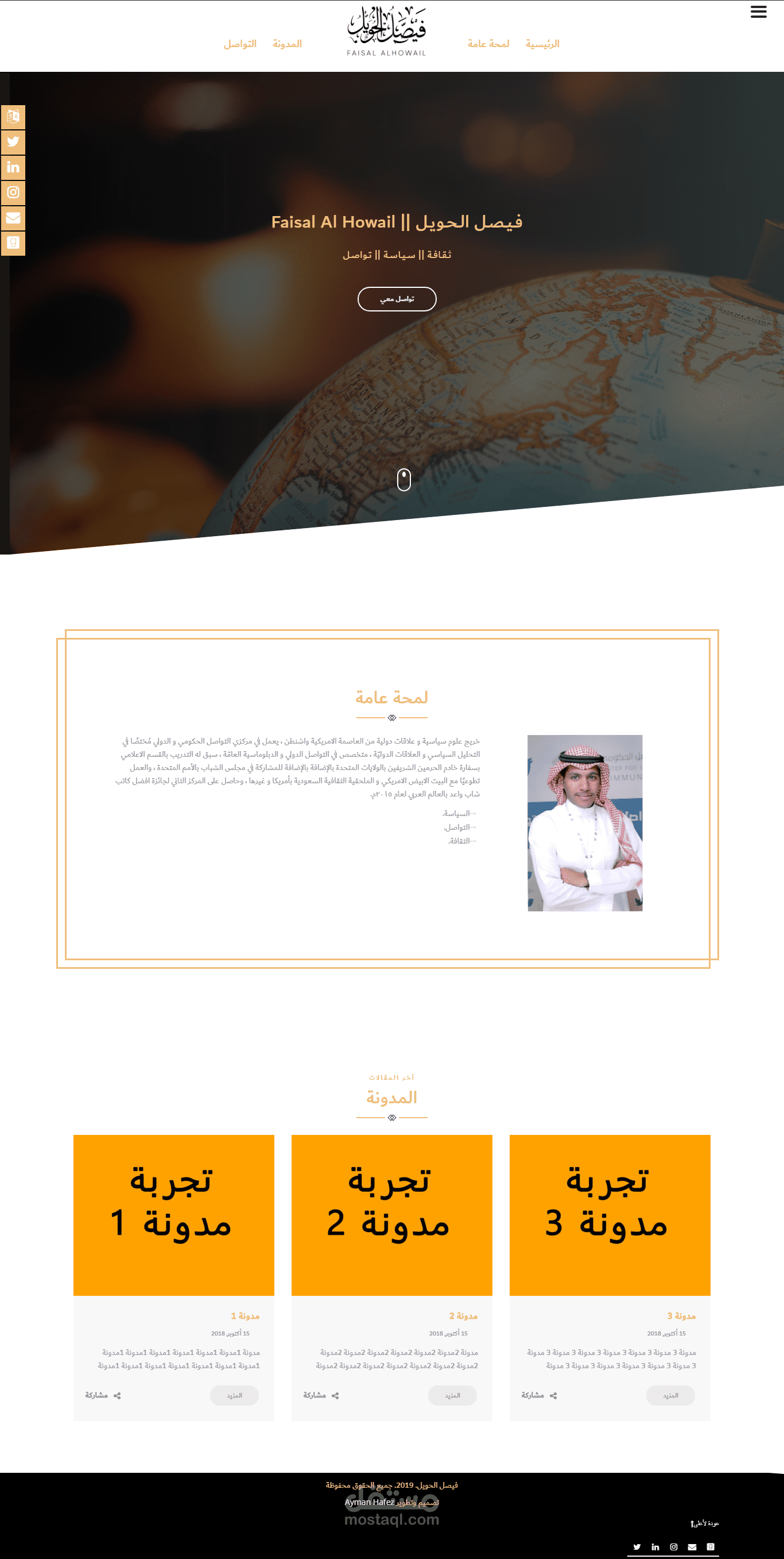 تصميم وبرمجة الموقع الشخصي لفيصل الحويل .. باللغتين العربية والانجليزية .. يوجد قسم للسيرة الذاتية وقسم للمدونة والعديد من الأقسام الاخرى ..