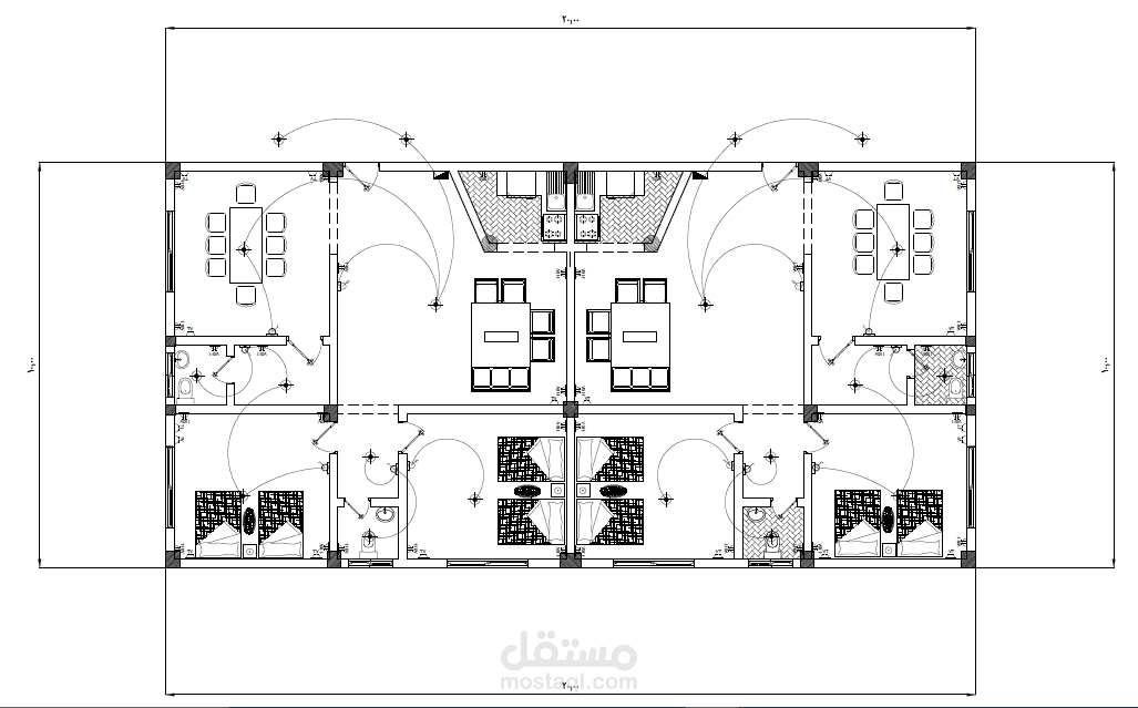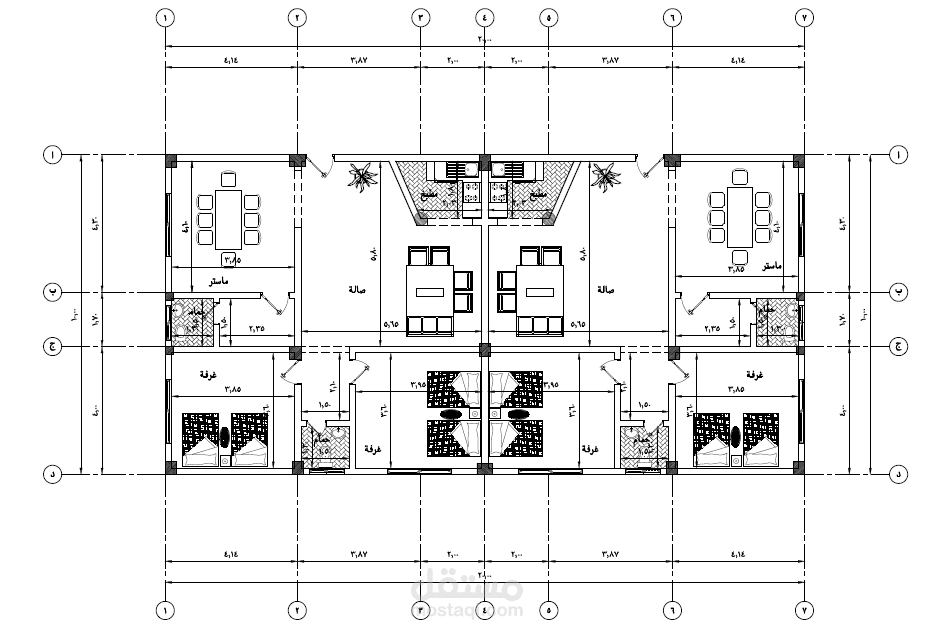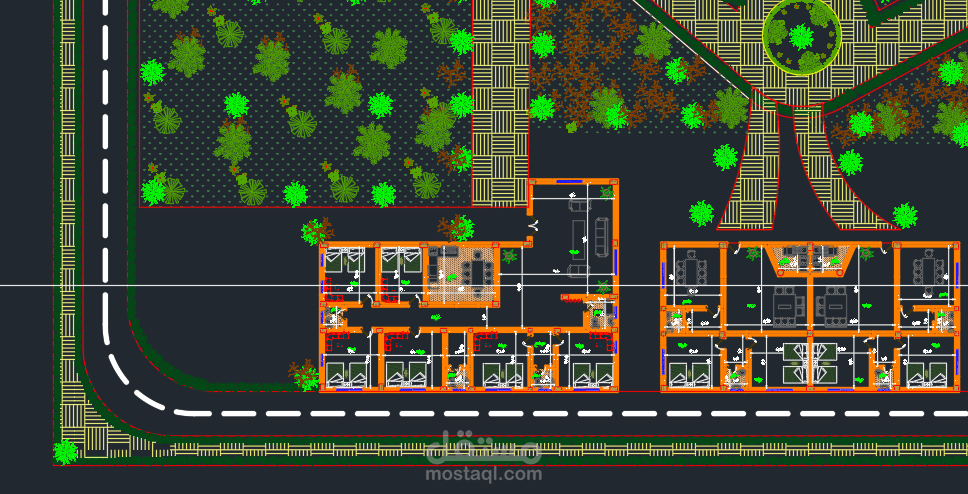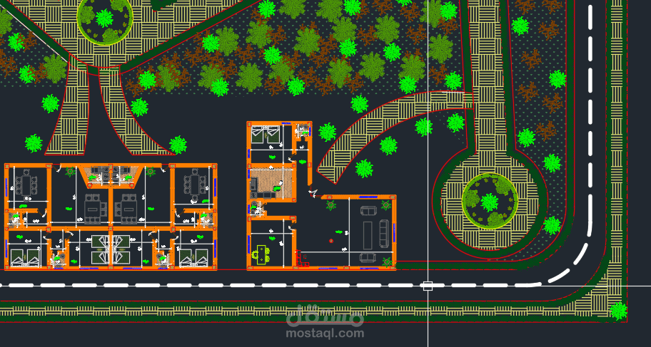 - لوحات المعماري لكل من الحديقة + 3 مباني سكن لدور أرضي