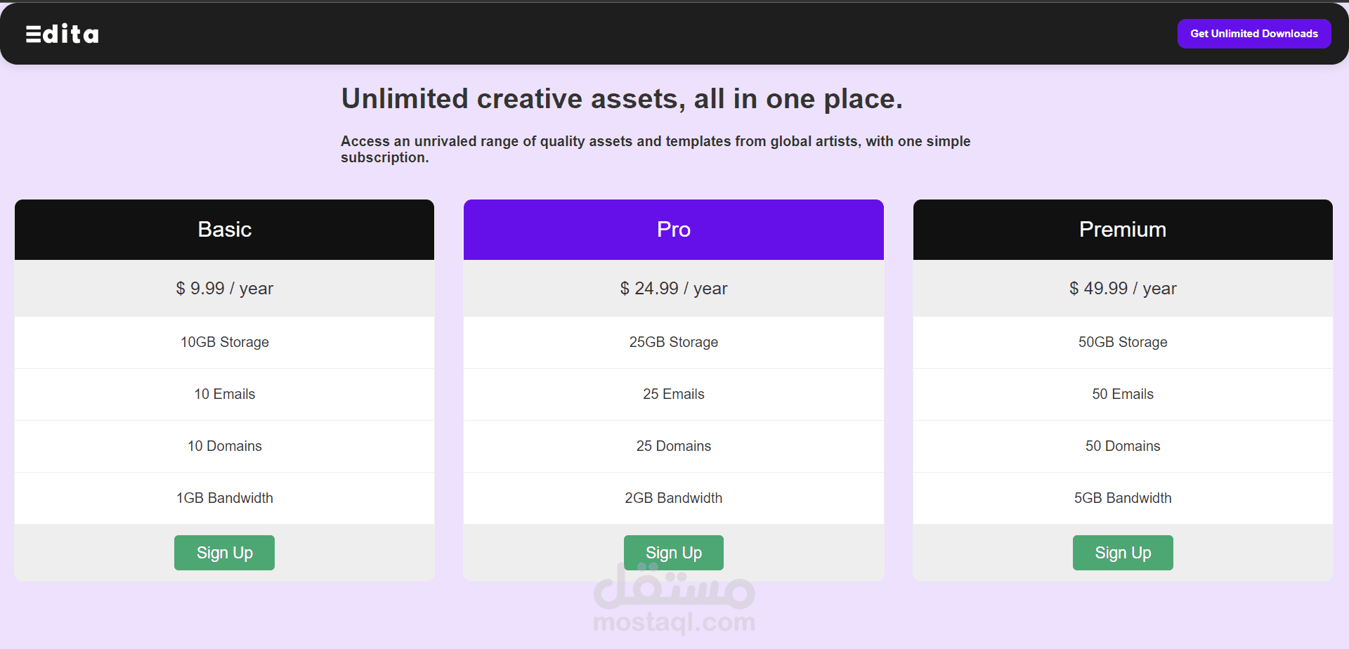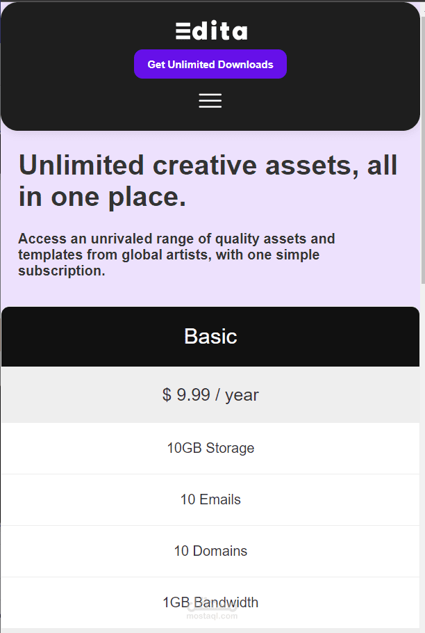 قالب EDITA Subscriptions هو مشروع قمت بتصميمه وتطويره بالكامل من الصفر، وهو عبارة عن منصة اشتراكات متكاملة توفر حلولاً مميزة لإدارة المحتوى المدفوع والاشتراكات الرقمية.