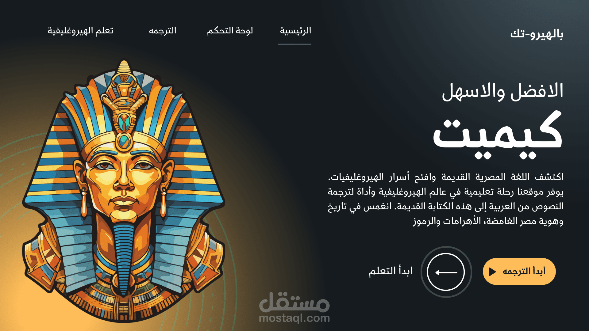 مشروع "Kemet" هو منصة متكاملة لترجمة النصوص العربية إلى اللغة الهيروغليفية القديمة. يتضمن المشروع عدة مميزات رئيسية، من بينها لوحة تحكم تفاعلية (Dashboard) تعرض البيانات المتعلقة بالترجمة، بالإضافة إلى خاصية التعرف البصري على الحروف (OCR) لرفع الصور واستخراج النصوص منها وترجمتها. كما يحتوي المشروع على قسم مخصص لتعلم اللغة الهيروغليفية من خلال دروس مبسطة ومعلومات تفاعلية عن الرموز الهيروغليفية. الهدف من المشروع هو توفير وسيلة سهلة وممتعة للتعرف على اللغة الهيروغليفية القديمة والتفاعل معها من خلال النصوص العربية.
