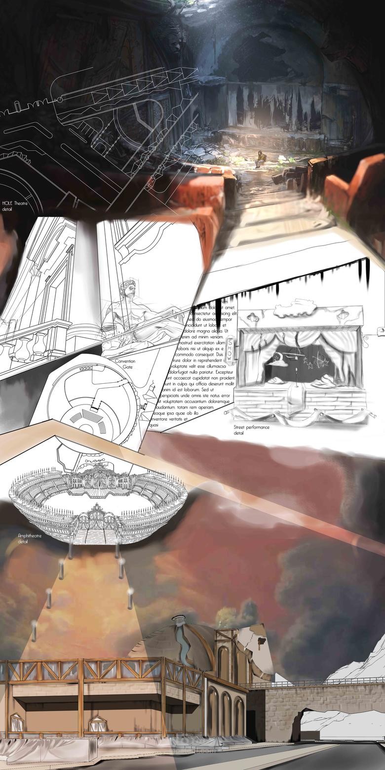 its a concept art of a historic theatre ( manual drawing and digital painting)