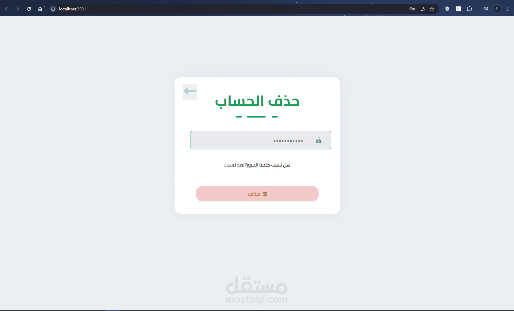 هذا الموقع لحذف الحساب بعد الانتهاء وتم استخدام في التنفيذ HTML في هيكله الموقع و ال CSS في ا لتنسيقات لتعطي شكلا جمالي للموقع و ال JS لتمكين المستخدم من التفتعل مع الموقع .