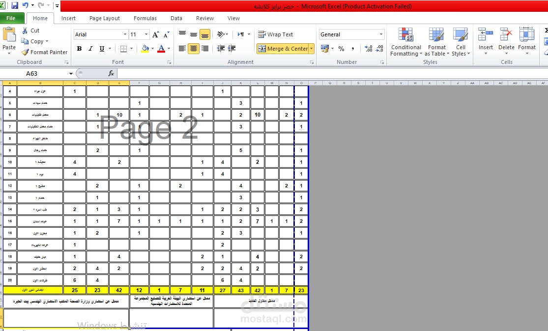 وايضا الحصر للاعمال والمواد والمعدات واعداد المستخلصات المالية