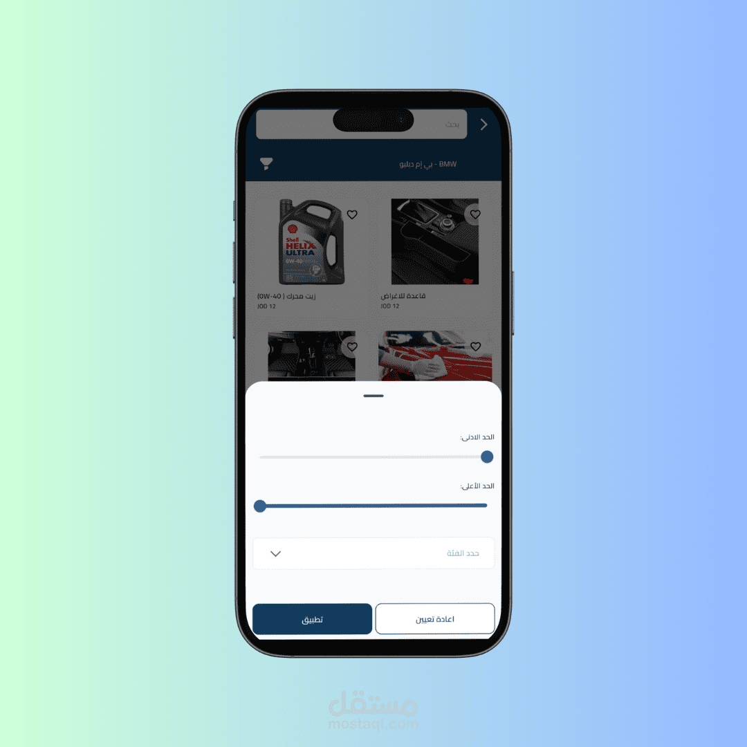 وجود فلتر داخل كل علامة تجارية يتم من خلاله إظهار البيانات حسب (الحد الأدنى، الحد الأعلى)، مع إمكانية إظهارها حسب الفئة مثل (إكسسوارات، قطع غيار، بيع واستئجار، الخ...)