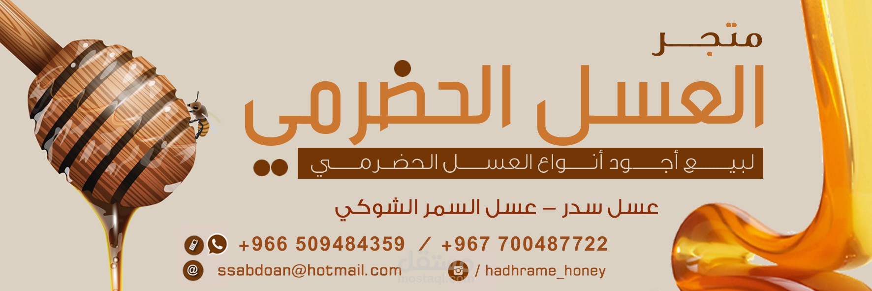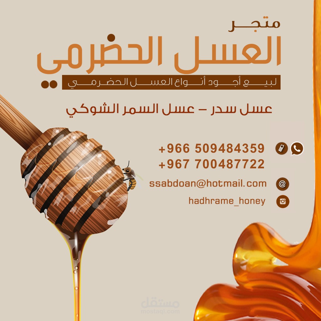تصميم اعلان وسائل تواصل اجتماعي لمتجر إلكتروني لبيع العسل الحضرمي
