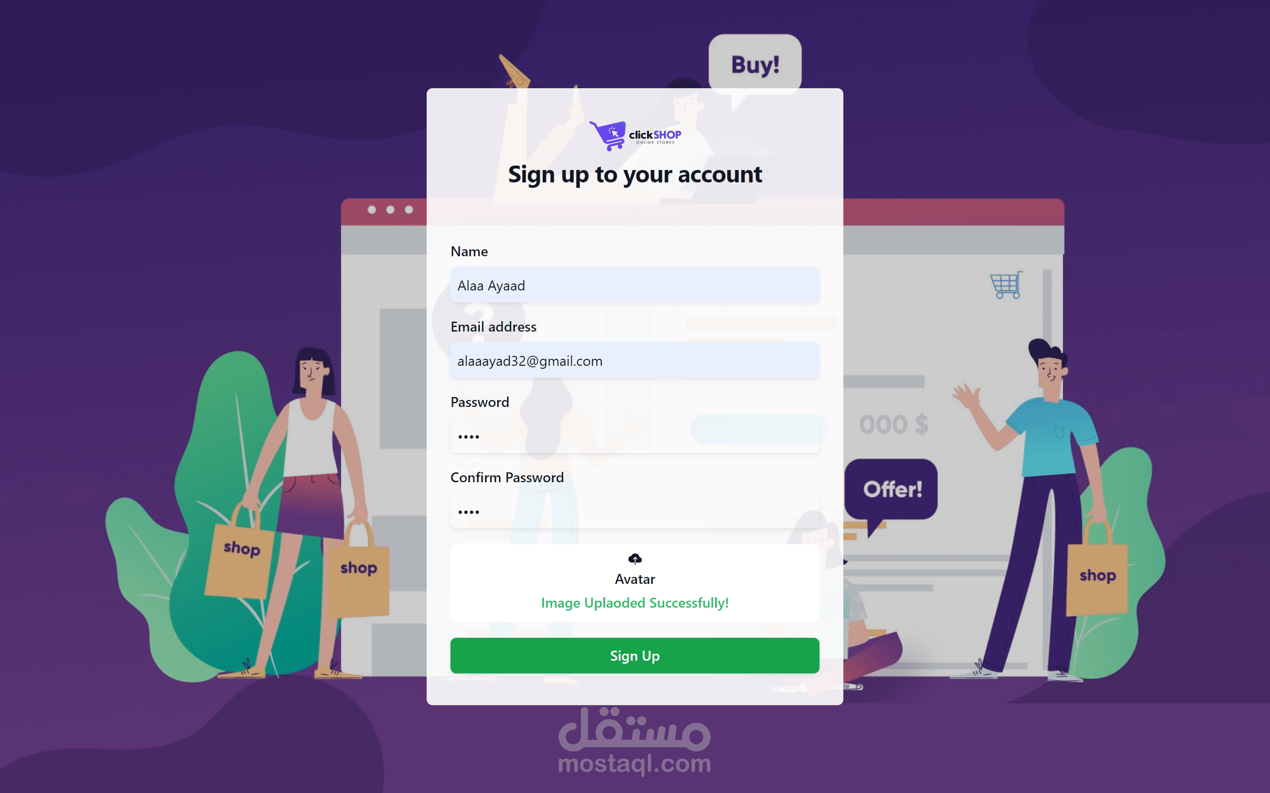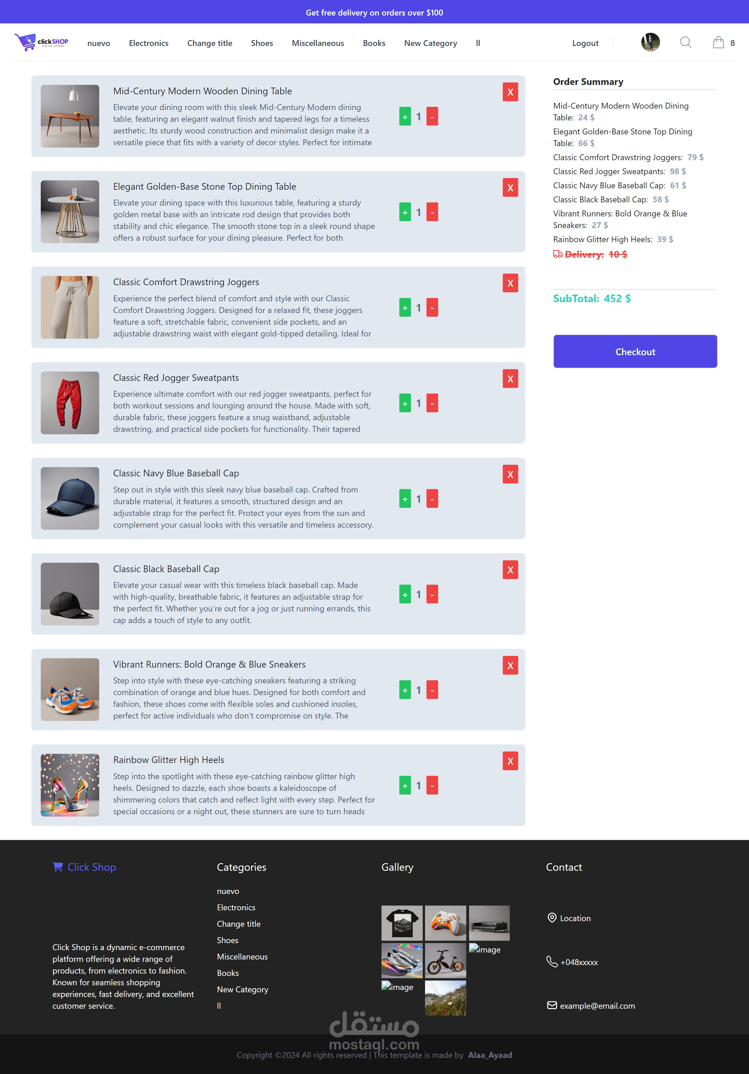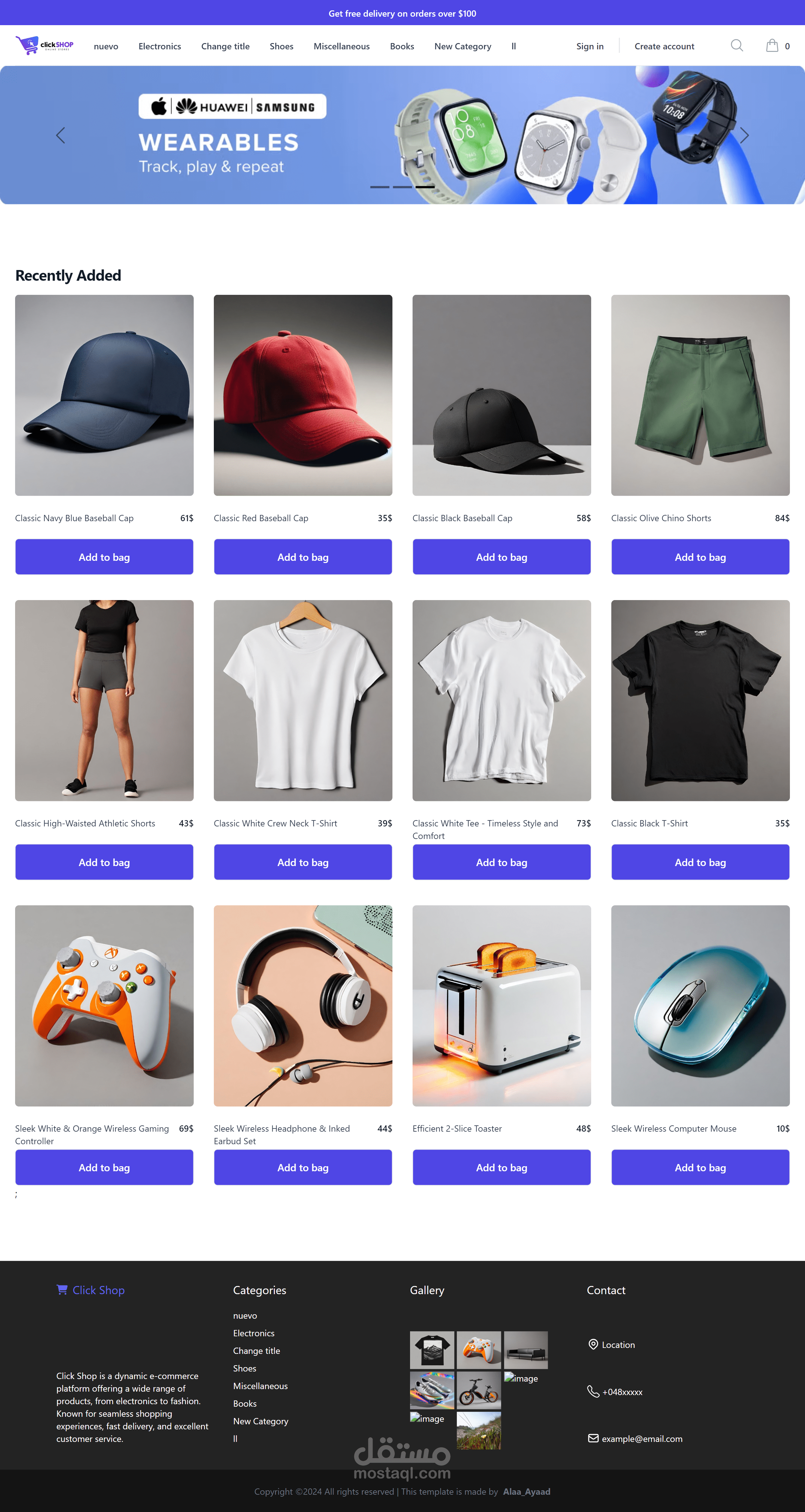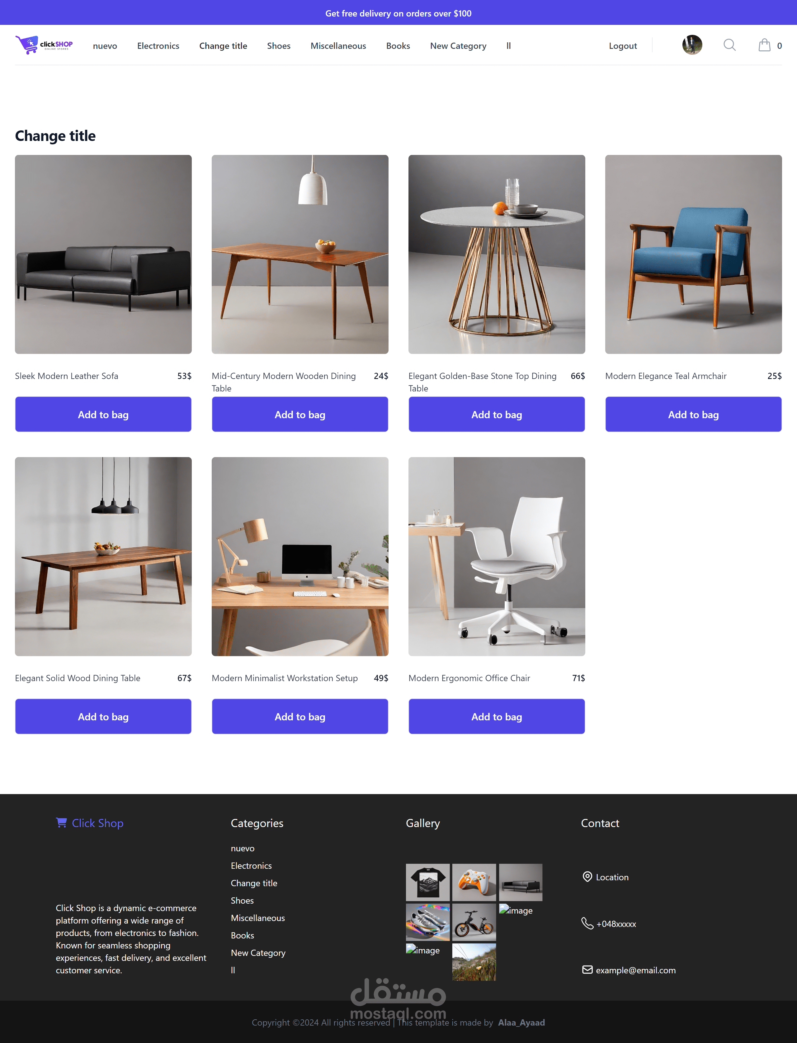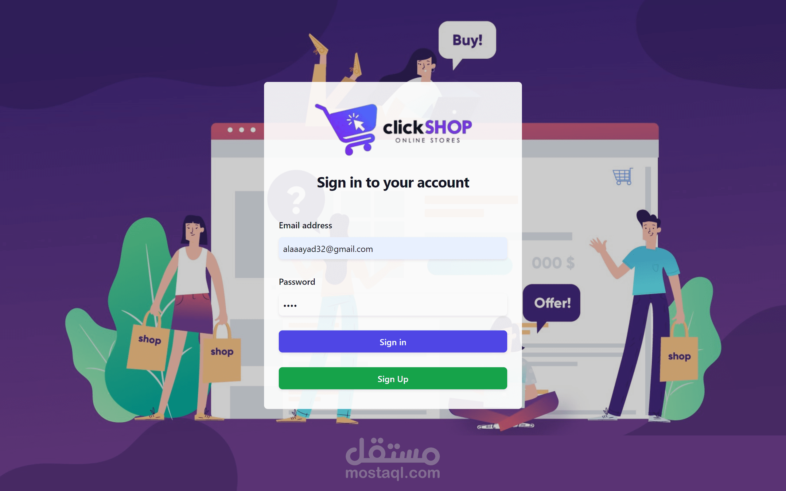 Click-shop: هو موقع تجارة الكترونيه يقوم المستخدم بتصفح جميع المنتجات و لكن اذا اراد شراء اي سلعه يجب ان يقوم بعمل حساب علي الموقع اولا ثم يقوم بتسجيل الدخول ويبدأ رحلته بحرية تامه للتسوق .