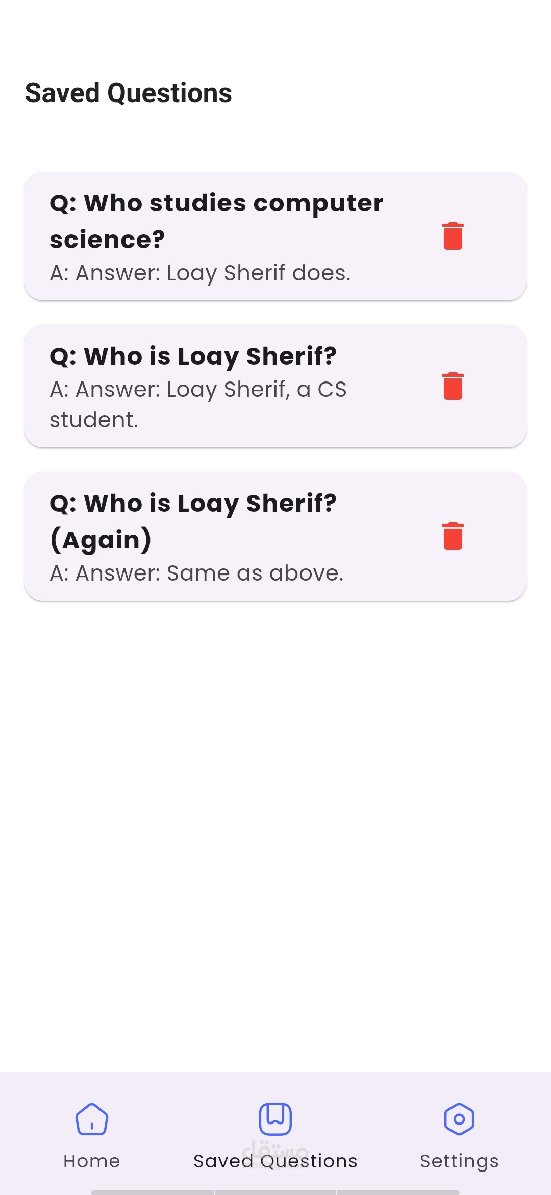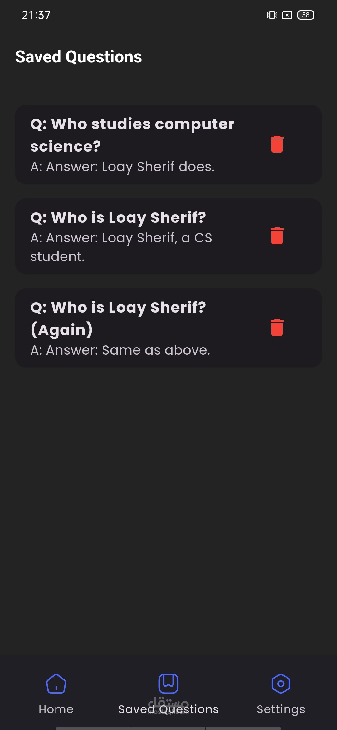 تخزين البيانات: تخزين الأسئلة والأجوبة في قاعدة بيانات Firestore، مما يتيح للمستخدمين العودة إلى الأسئلة السابقة.