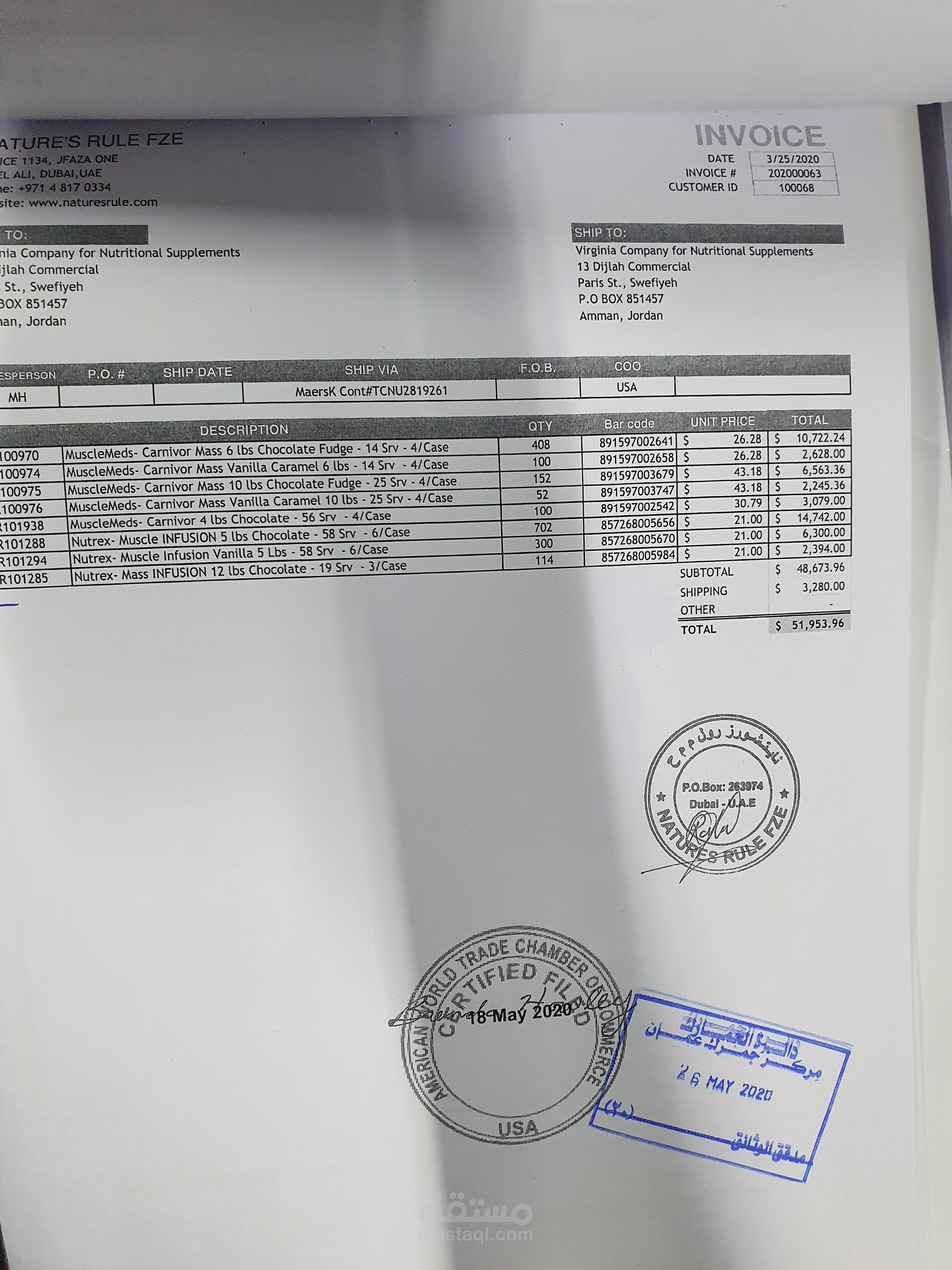 فواتير تصدير و عملية تصحيح للكميات بعد الجرد