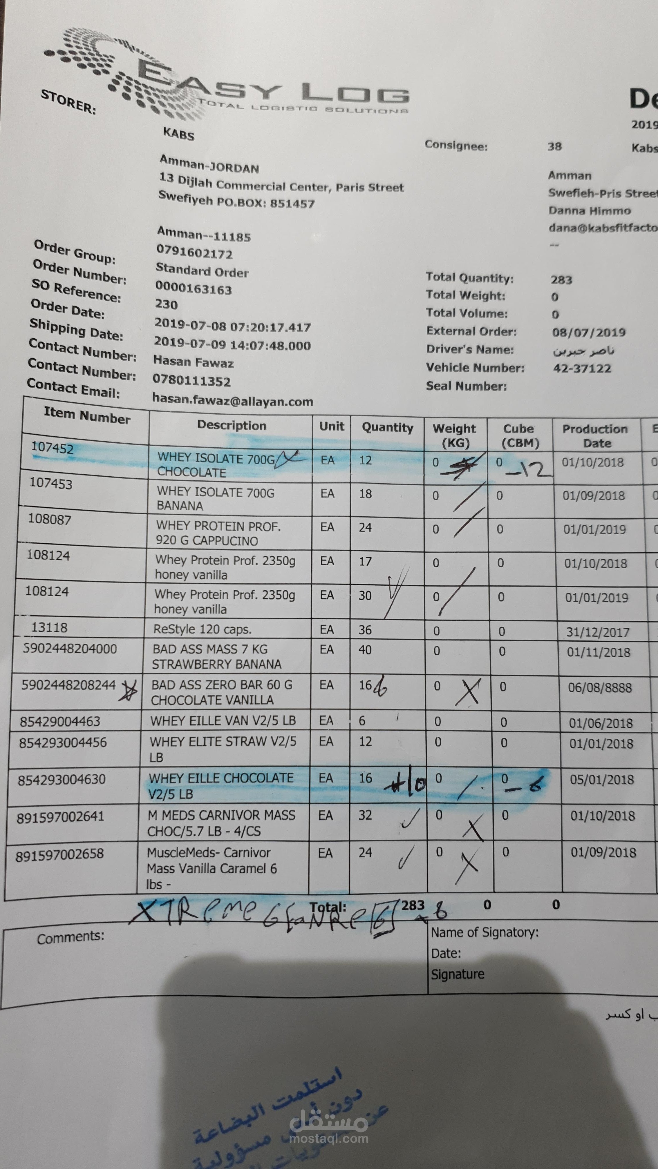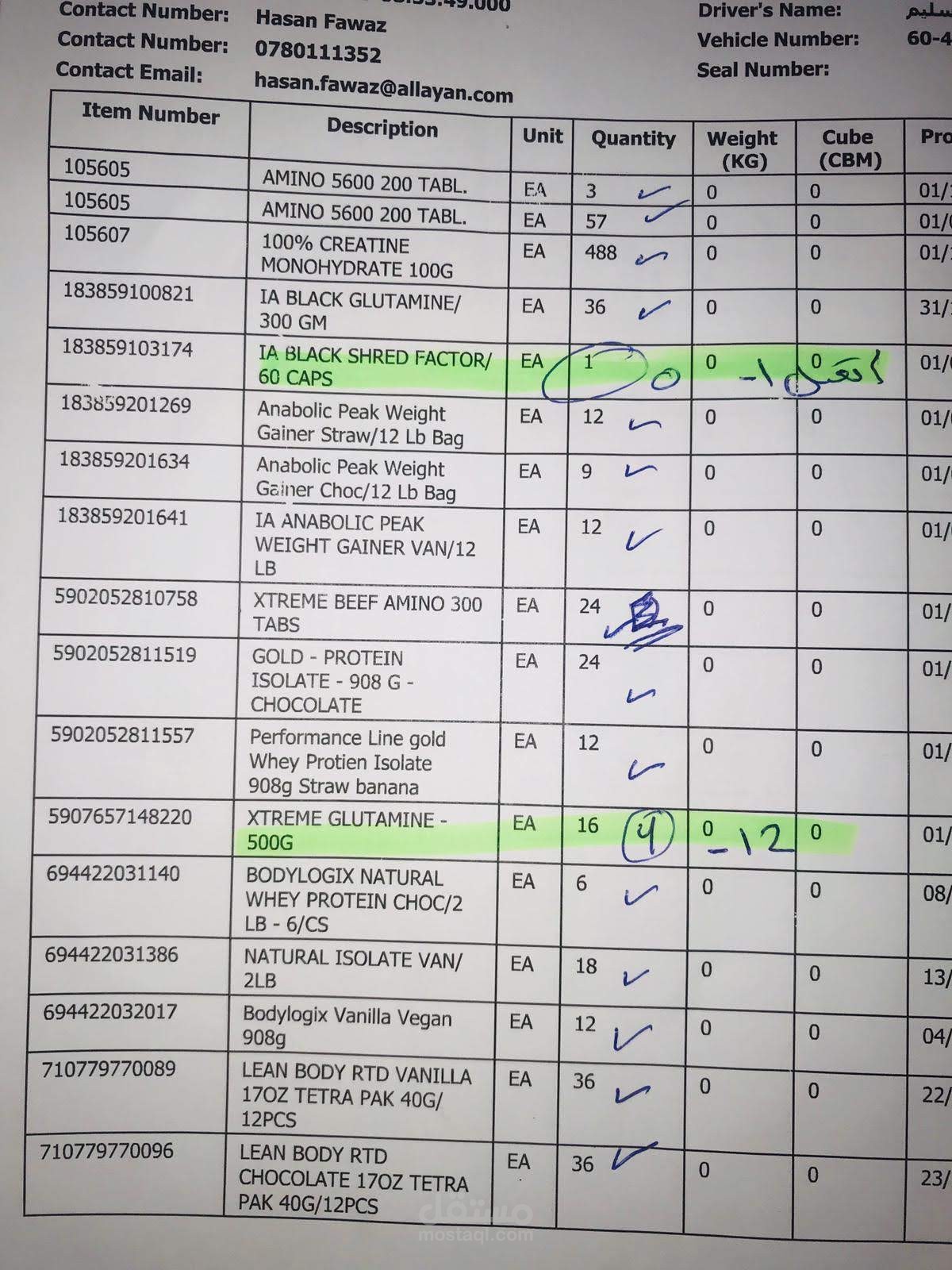 التدقيق على كمية البضاعة الفعلية و مقارنتها بفاتورة الشراء