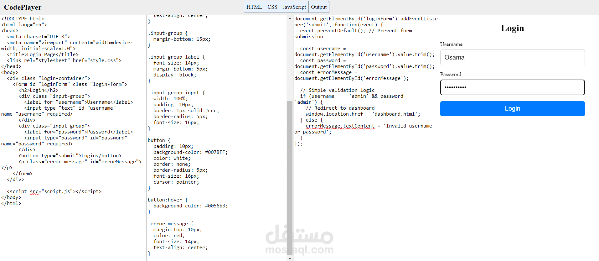 موقع الويب هذا هو منصة تفاعلية تتيح للمستخدمين كتابة أكواد HTML وJavaScript وCSS في بيئة مريحة. يمكن للمستخدمين إدخال الأكواد ورؤية الناتج بشكل فوري، مما يسهل عليهم تجربة الأفكار والتعلم بشكل تفاعلي. بفضل استخدام jQuery، يمكن تنفيذ تأثيرات ديناميكية وتحسين تفاعل المستخدم مع العناصر في الصفحة. يهدف الموقع إلى تقديم تجربة تعليمية ممتعة وفعّالة، حيث يمكن للمستخدمين استكشاف إمكانيات تطوير الويب وتطبيق أفكارهم بسرعة وسهولة.