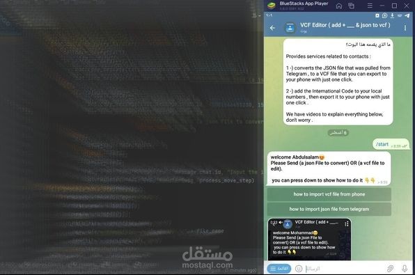 1-) يحول ملف JSON الذي تم سحبه من Telegram، إلى ملف VCF يمكنك تصديره إلى هاتفك بنقرة واحدة فقط.