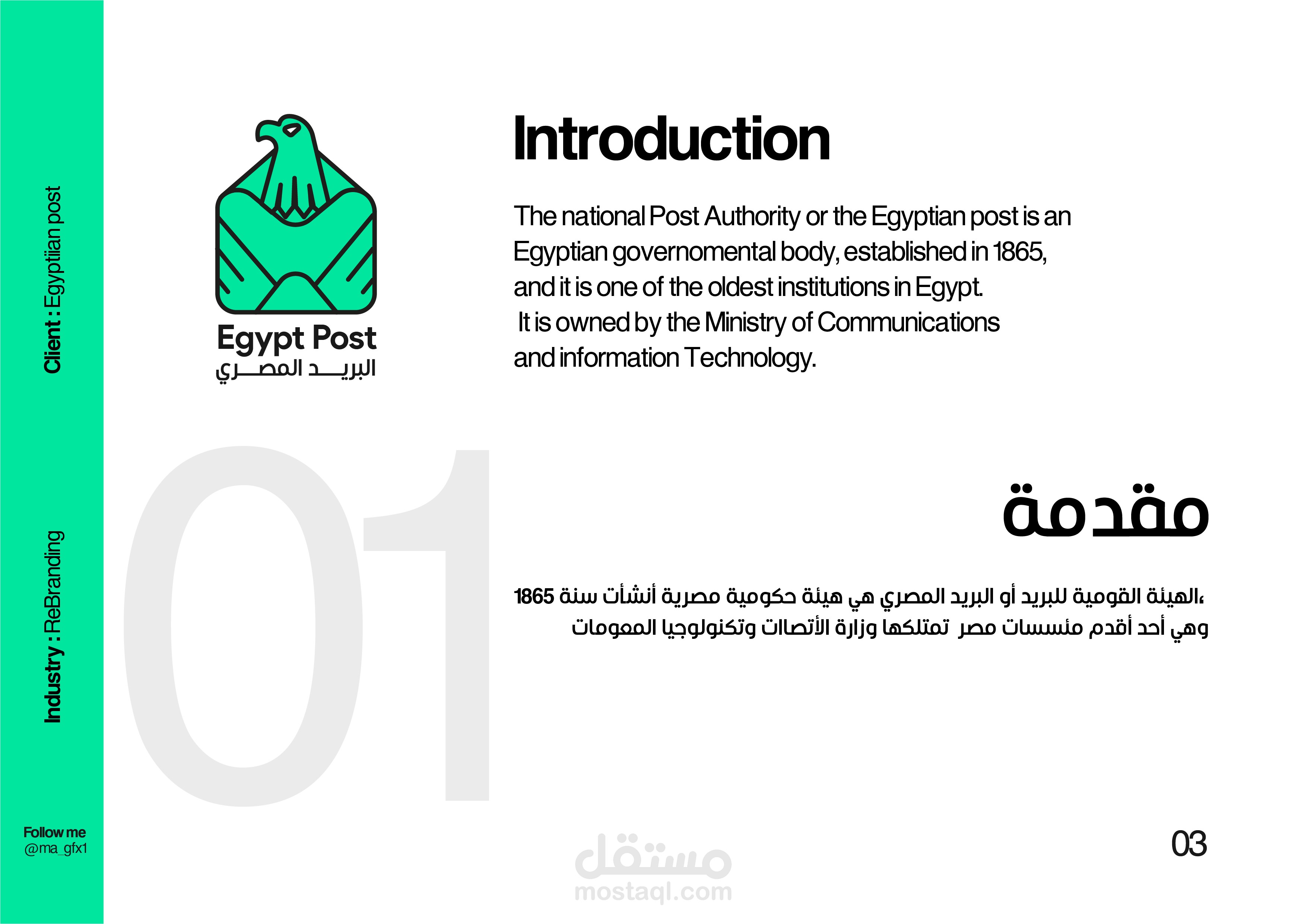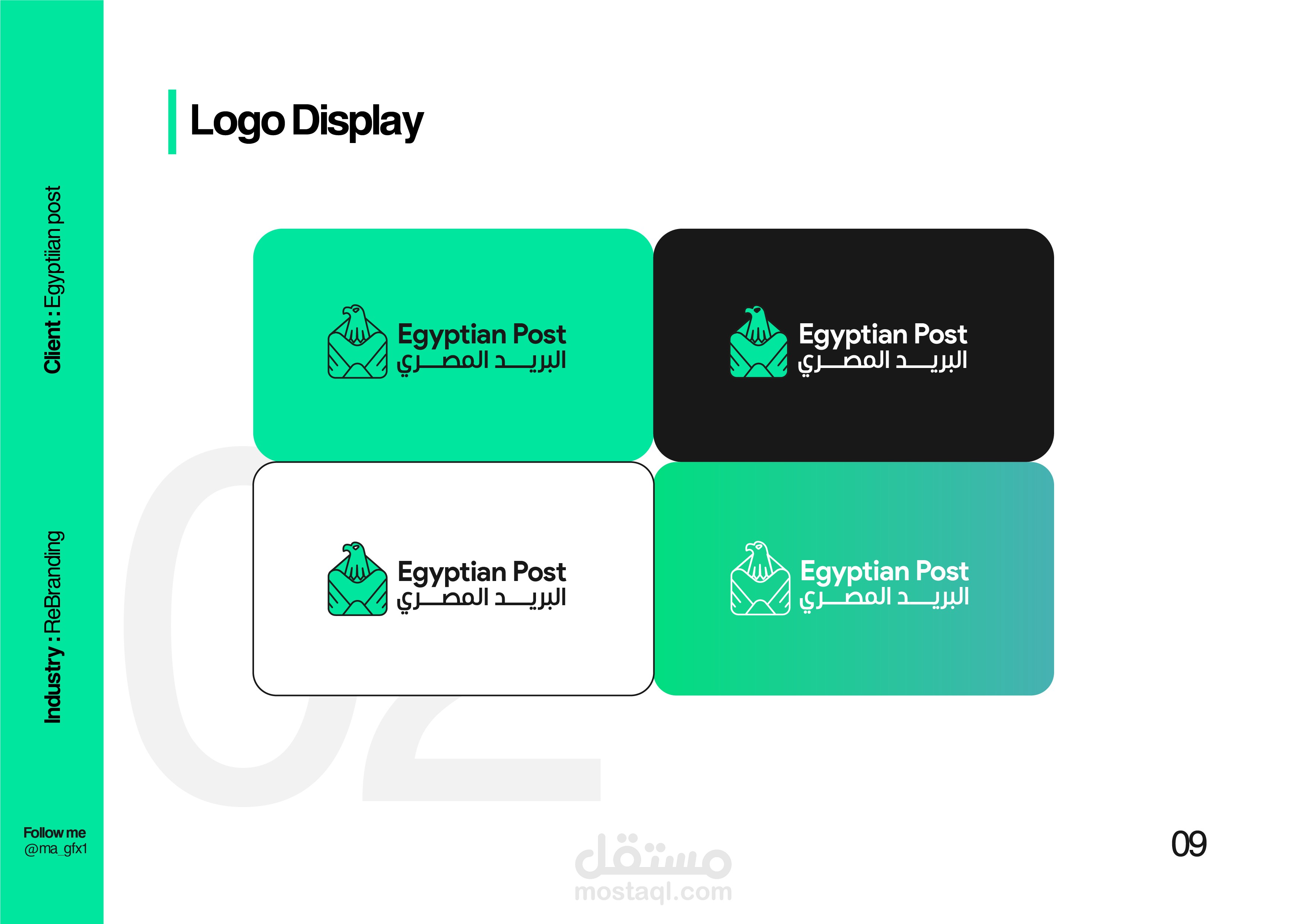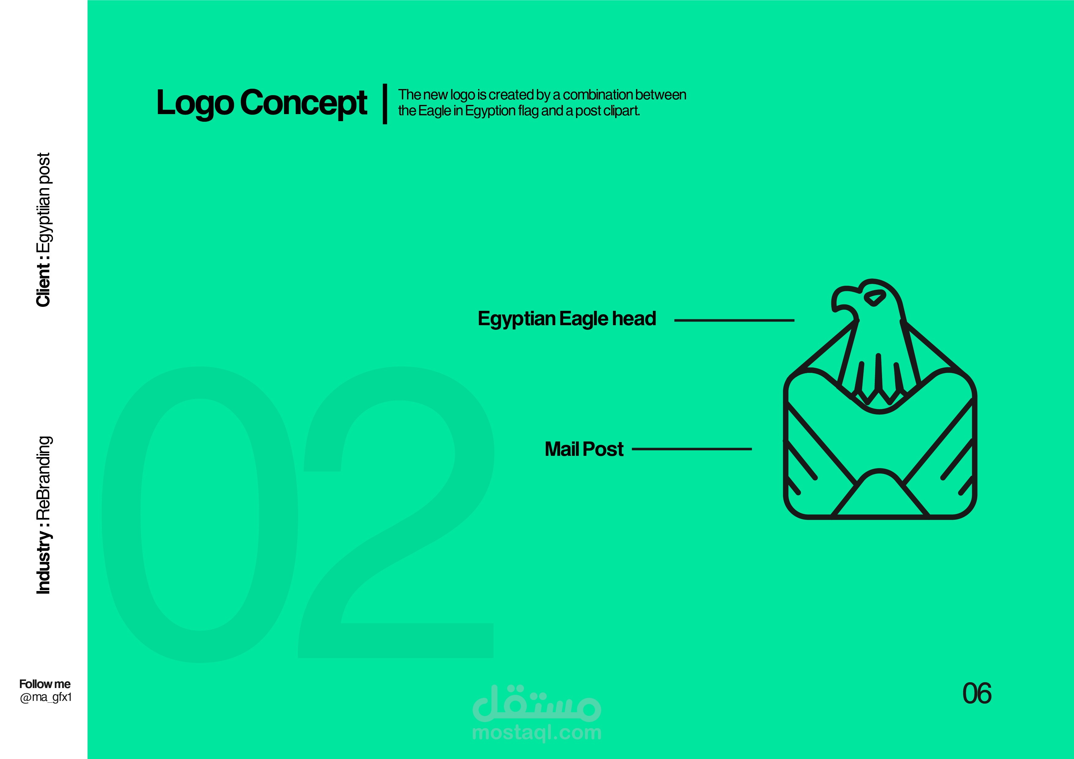 In this rebranding project for Egypt Post, I aimed to modernize and elevate the brand's identity while paying homage to its rich national heritage. The new logo I designed is a seamless fusion of two iconic symbols: a traditional mail post and the Egyptian Eagle Head, a prominent figure on the national flag of Egypt. This unique blend symbolizes the strength, reliability, and authority of Egypt Post while maintaining a clear connection to its postal services roots. The updated design reflects a fresh, forward-thinking vision for the organization, emphasizing trust, efficiency, and national pride.