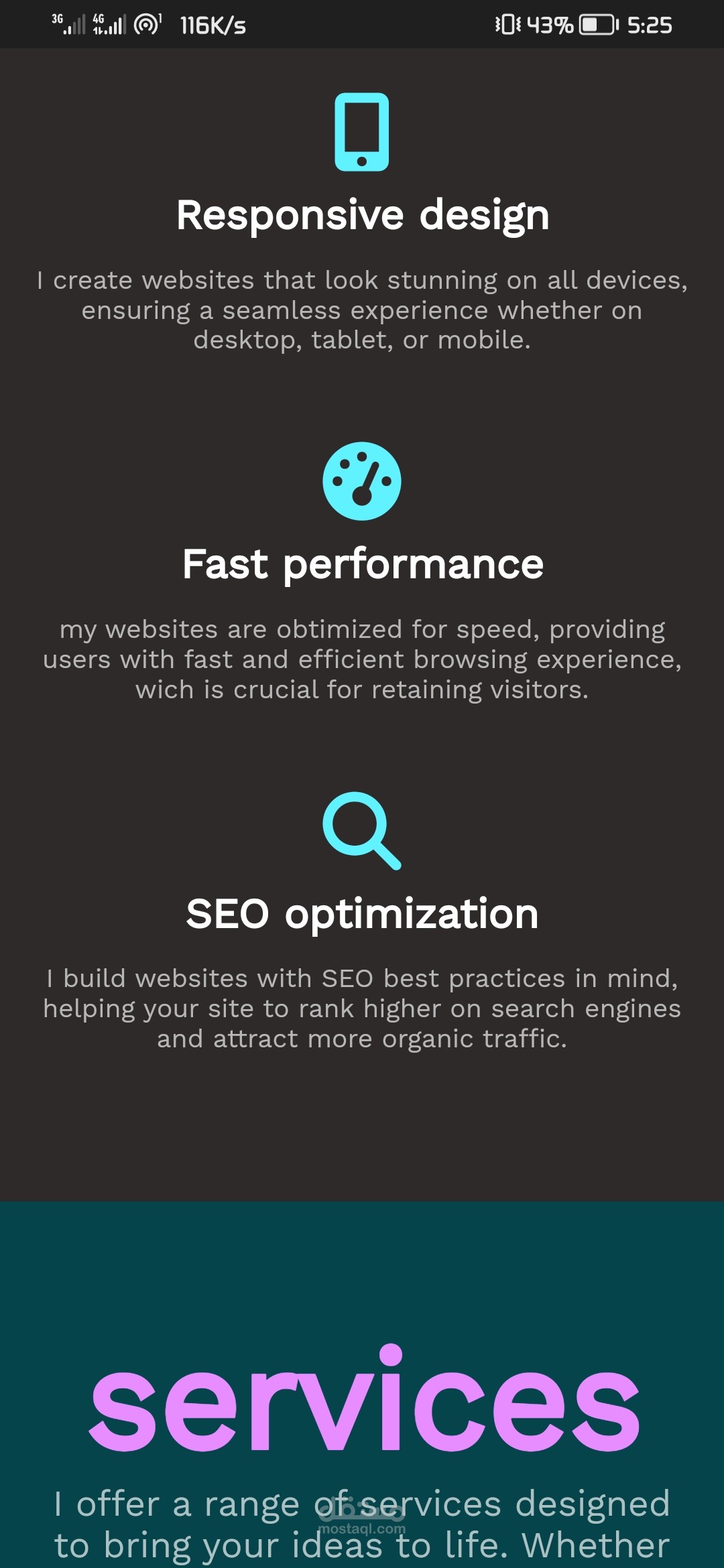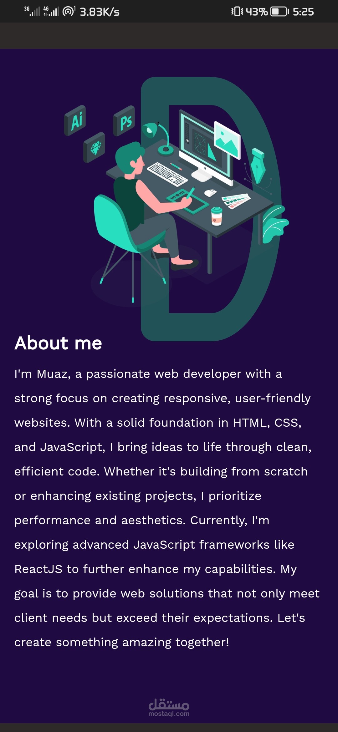 الغرض من الصفحه إعطاء فكره عن ما استطيع عملهو في تصميم وتطوير الويب