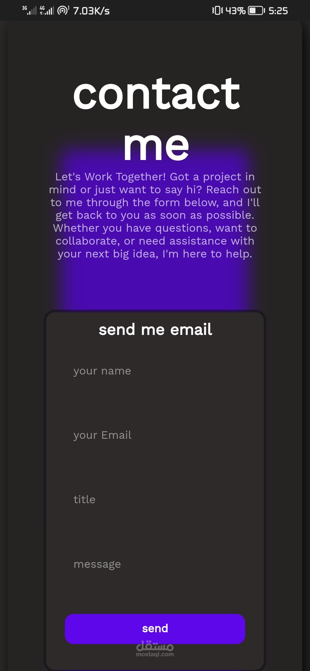 كمان يحتوي قسم contact me على فورم يمكن من خلاله ارسالي رساله لي عبر الإيميل