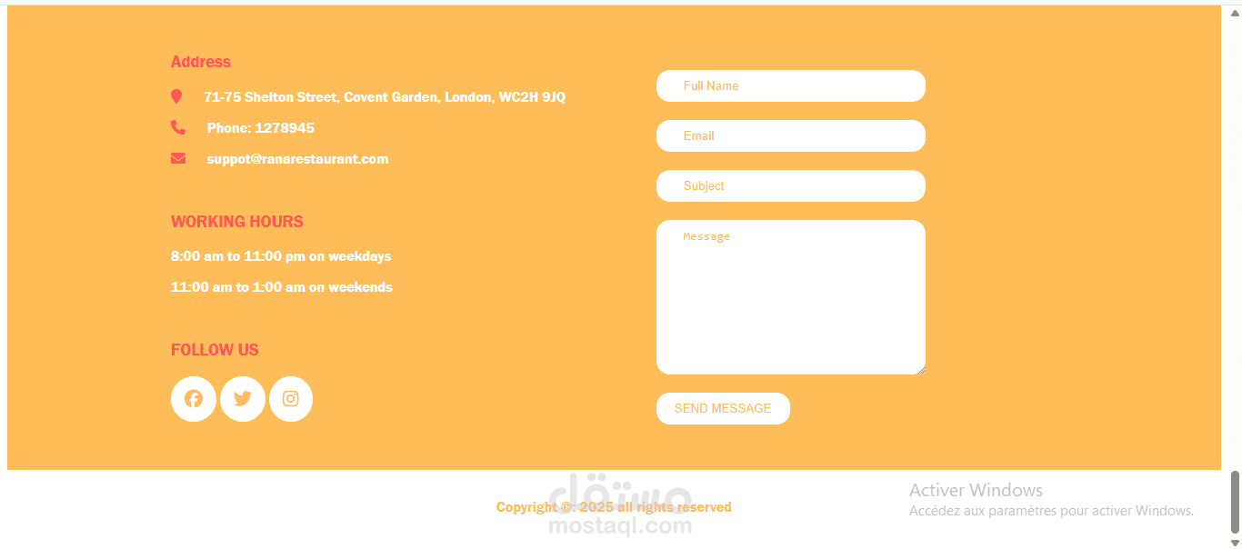 Restaurant website using html and css