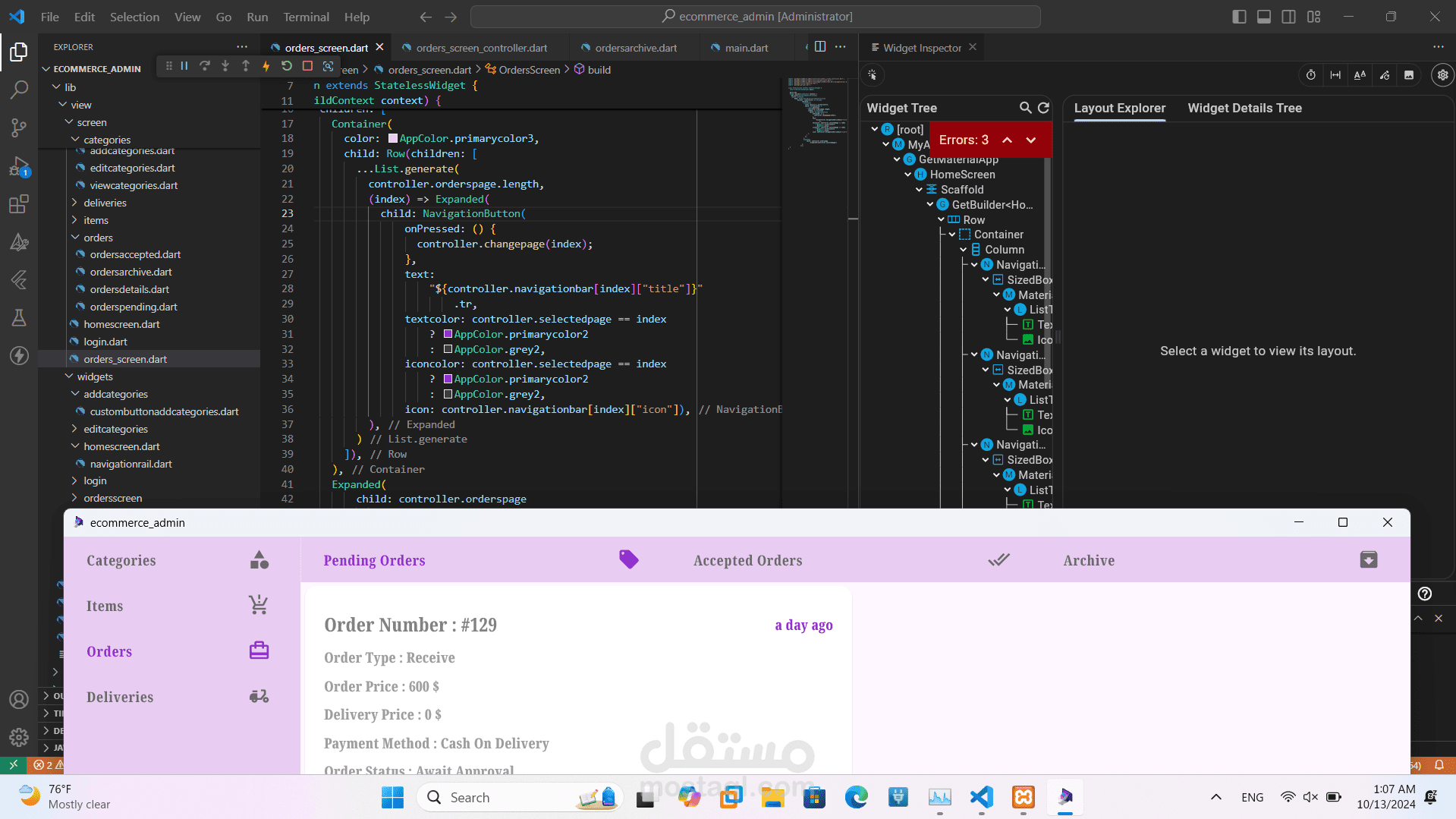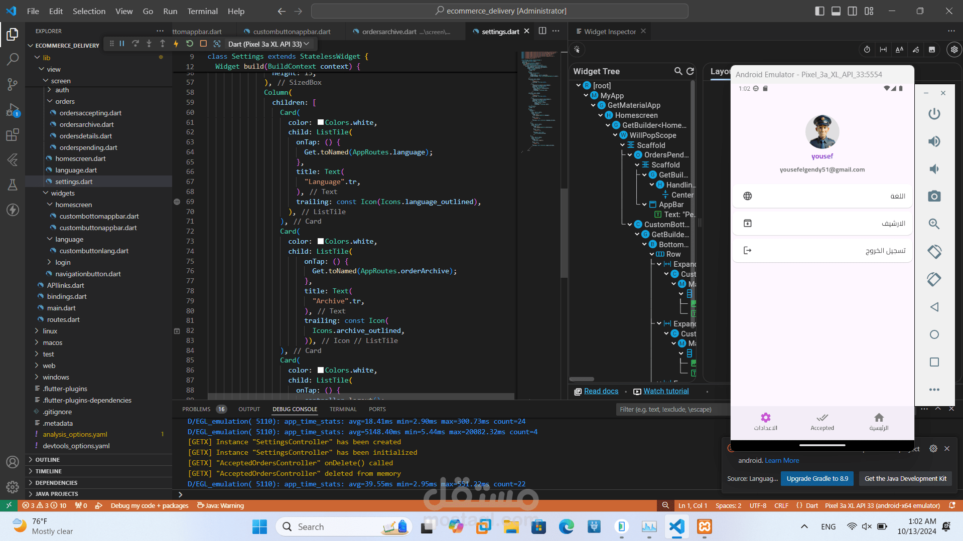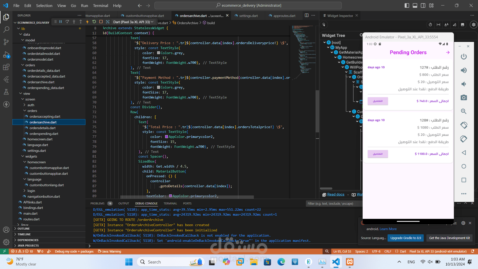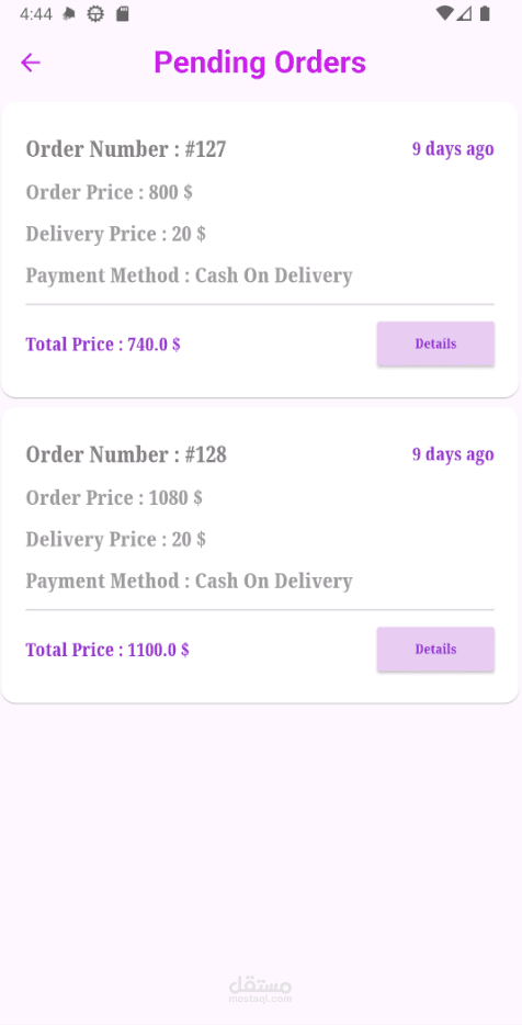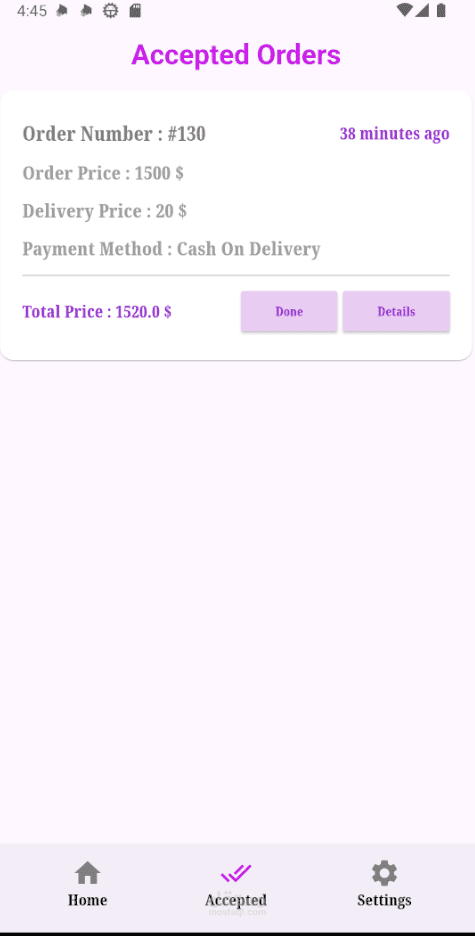 2. delivery mobile app لقبول الطلبات و توصيلها و ارسال اشعارات للزبائن