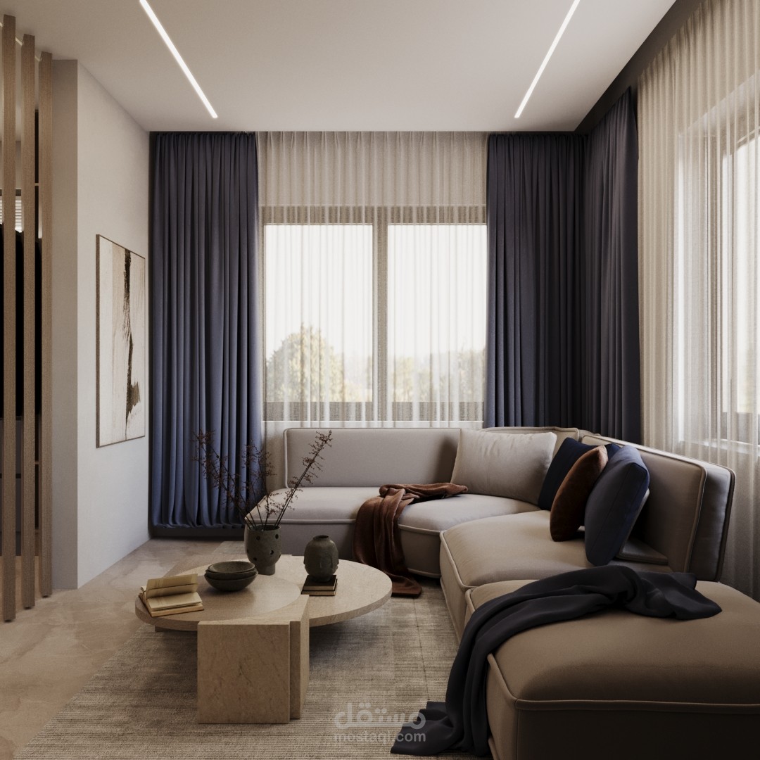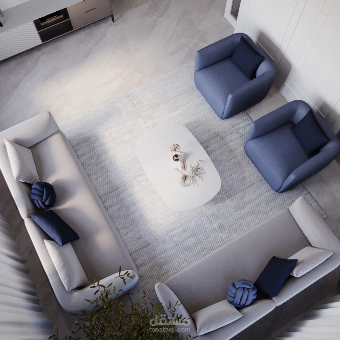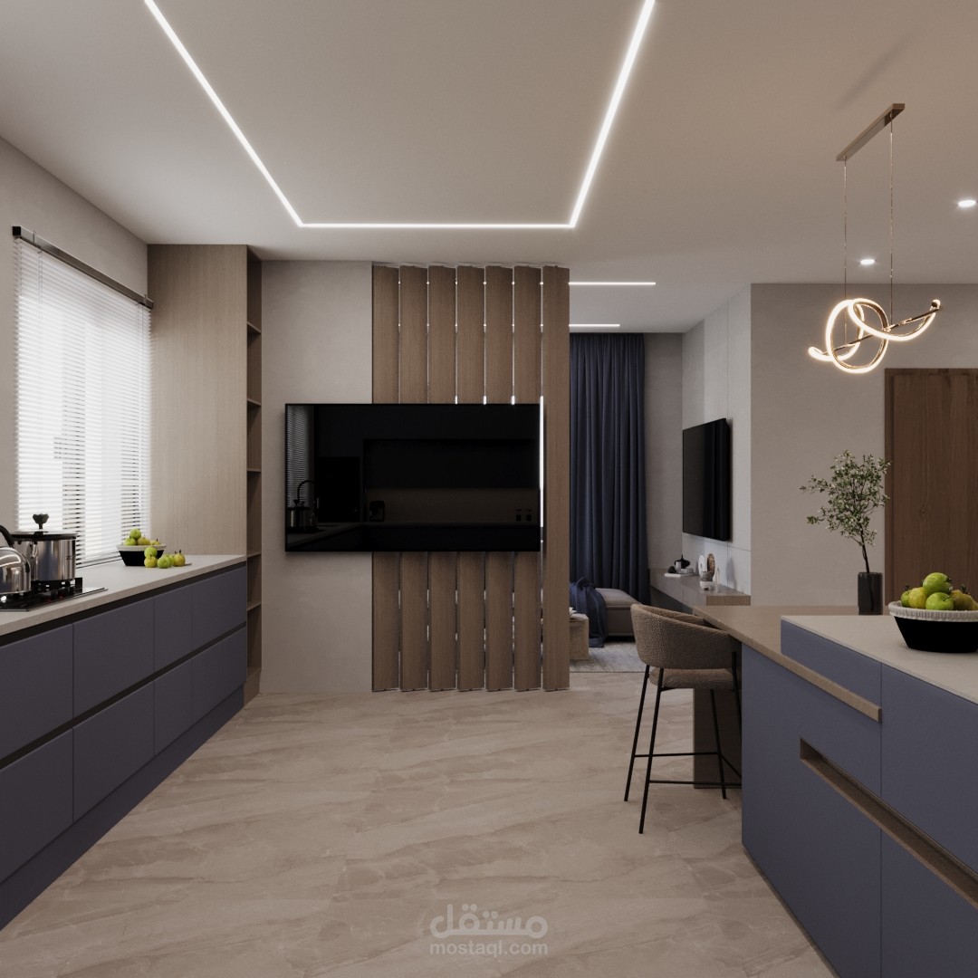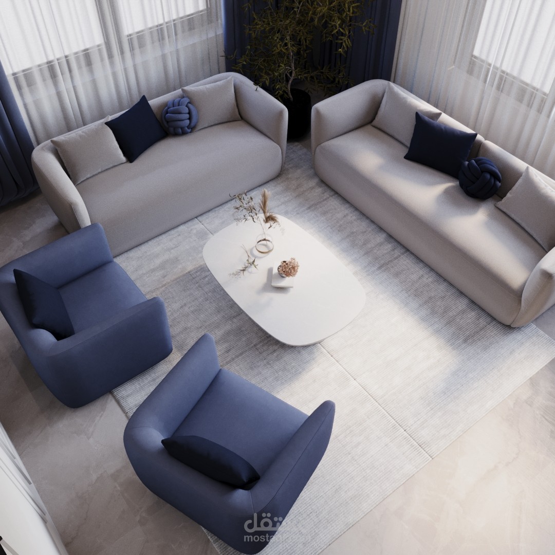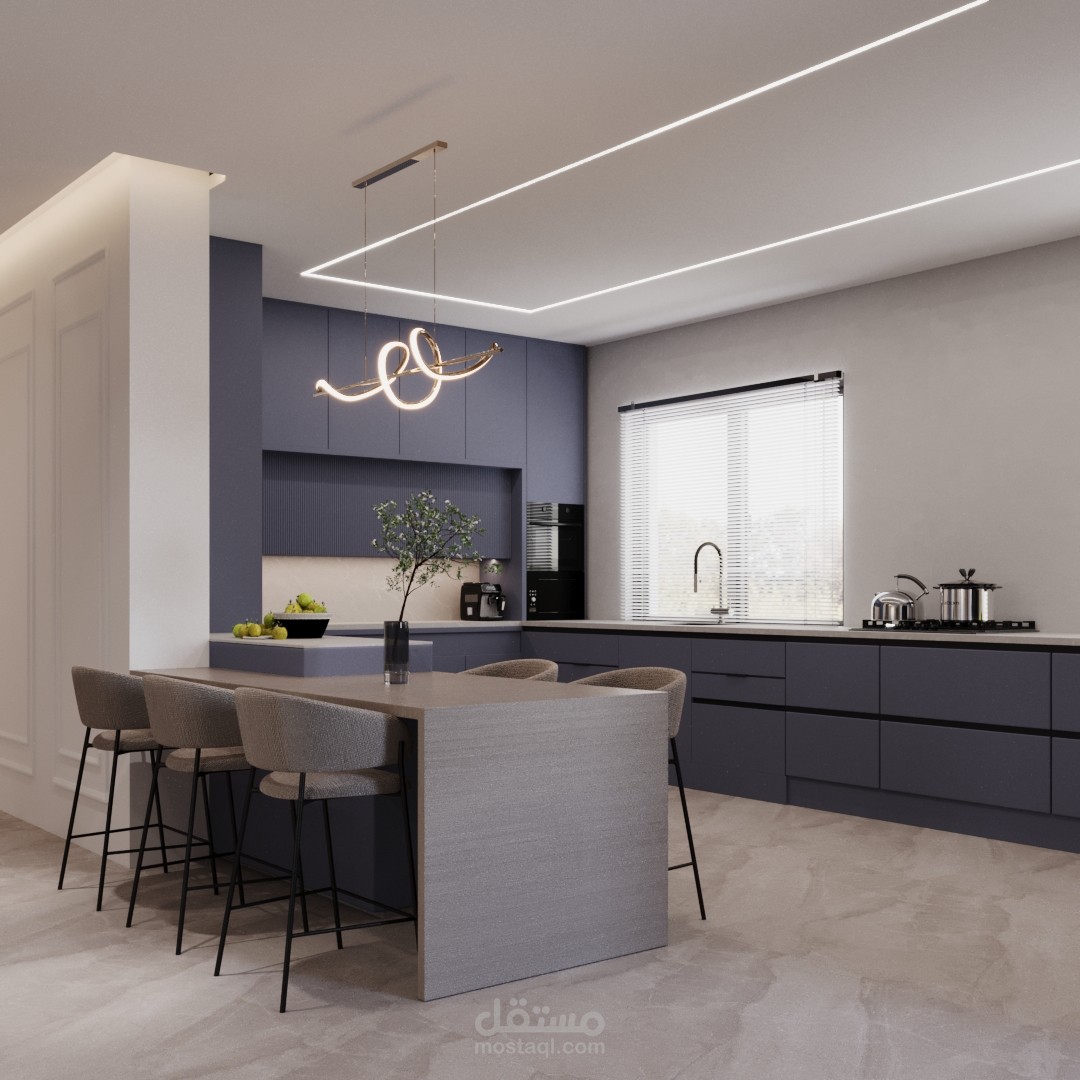 مشروع تصميم داخلي لمنزل مستر سامر، تم التركيز على ثلاث مناطق رئيسية: المطبخ، منطقة المعيشة، ومنطقة الاستقبال، مع الحرص على توفير الخصوصية لكل مساحة.