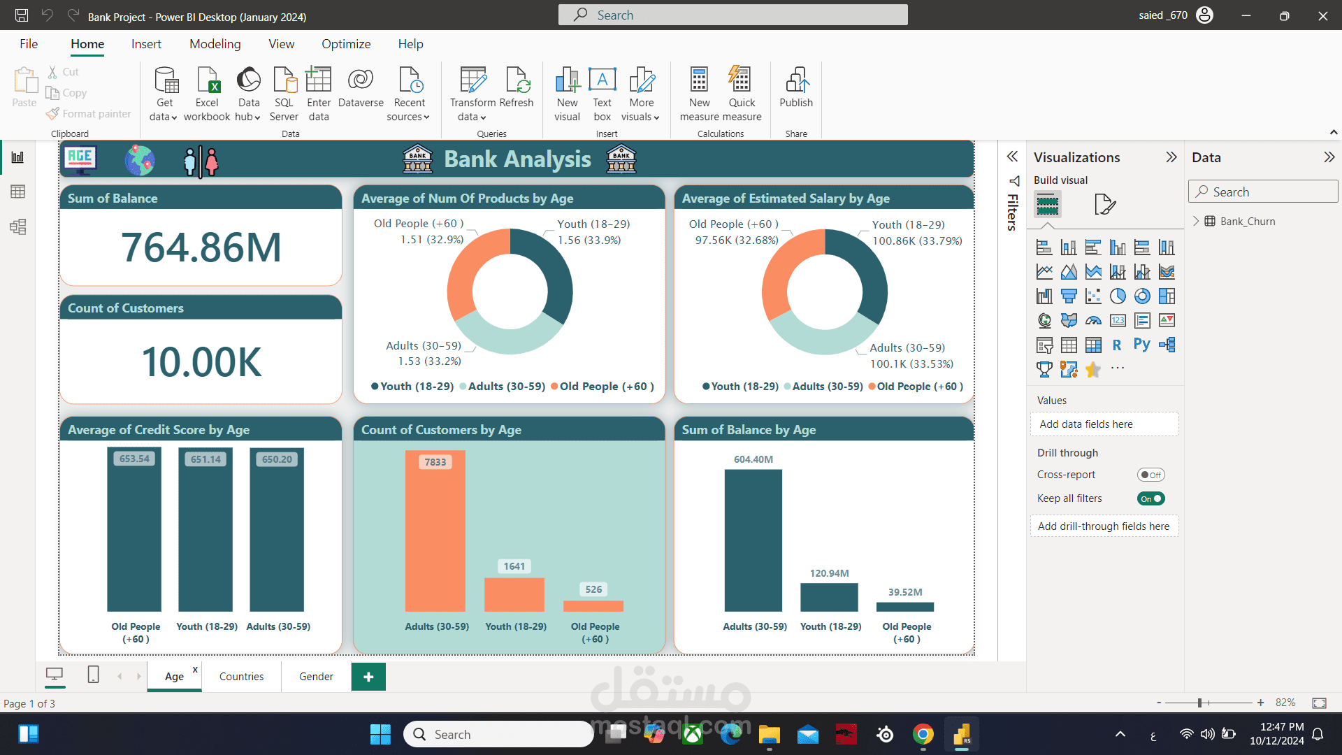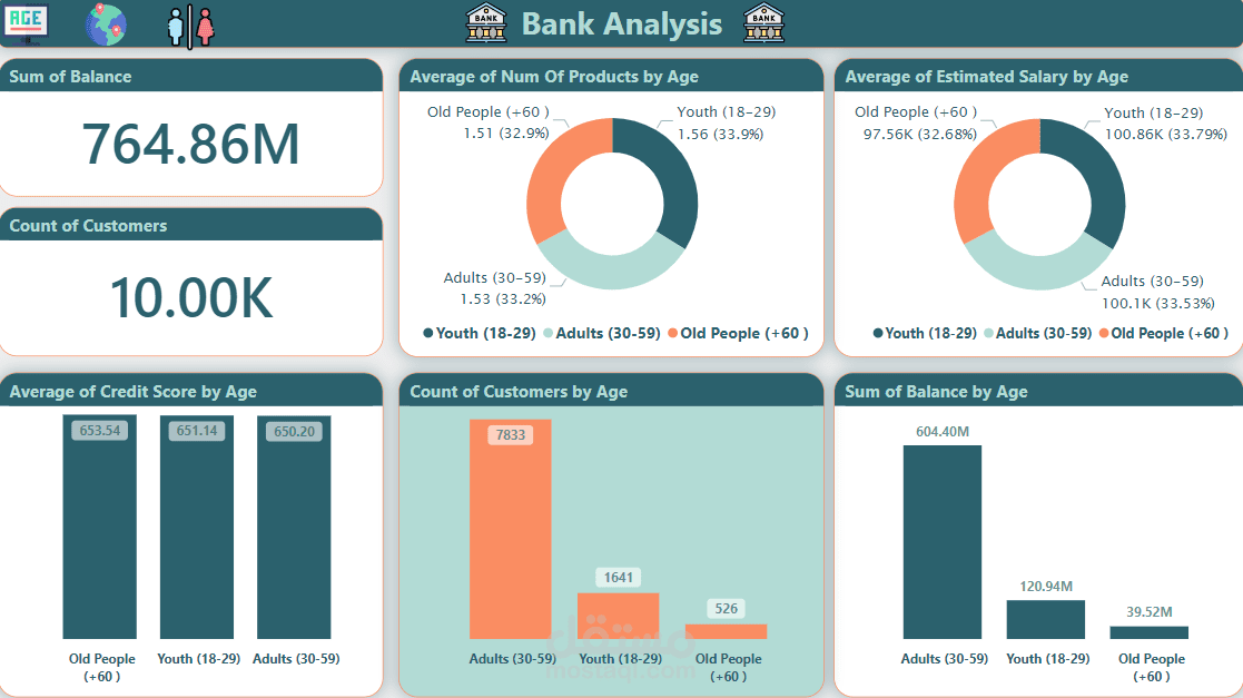 يتضمن هذا المشروع تحليل بيانات عملاء أحد البنوك لاكتساب رؤى حول سلوك العملاء وتحديد الأنماط التي يمكن أن تحسن عملية اتخاذ القرار. يشمل التحليل مقاييس رئيسية مثل الخصائص للعملاء , واستخدام المنتجات, ومعدلات ترك العملاء (Churn), و ربطها مع كل الفئات العمرية.