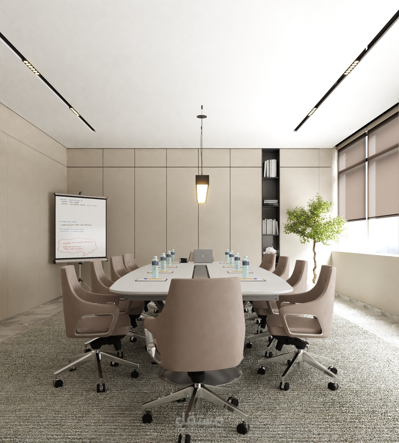 تم تصميم غرفة الاجتماعات للسيد مؤيد لتكون مكانًا مثاليًا لعقد الاجتماعات والاتصالات الفعالة. تشمل المميزات الرئيسية ما يلي: