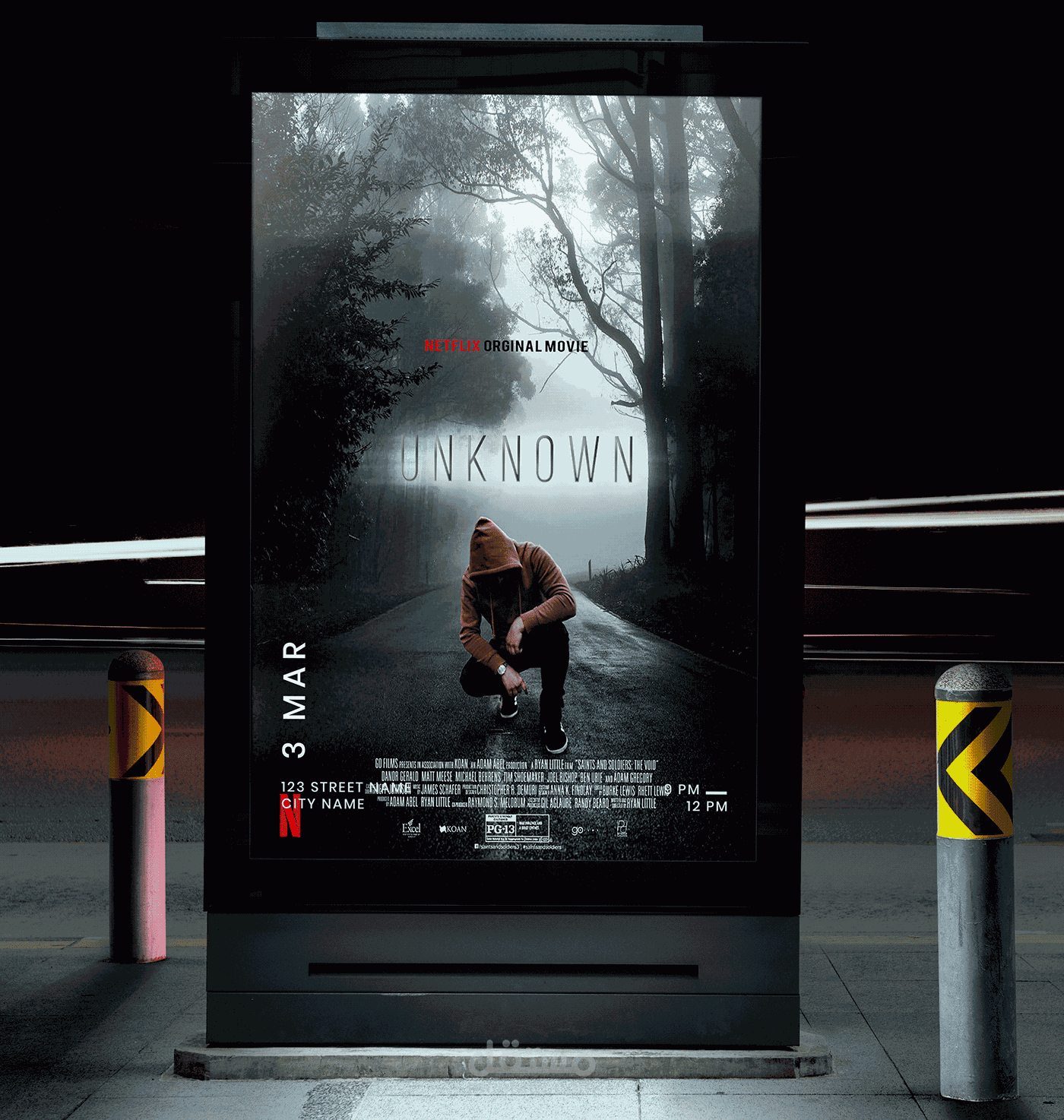الفكرة من البوستر هي ايحاء بالغموض و المجهول وخلفية التي استعملتها ترمز للمجهول الذي لا نعرفه و هو ما وراء الضباب او اين تؤدي هذه الطريق و بعدها اضفت هذا الشخص المجهول وهذا ما جعل البوستر اكثر غموضا.
