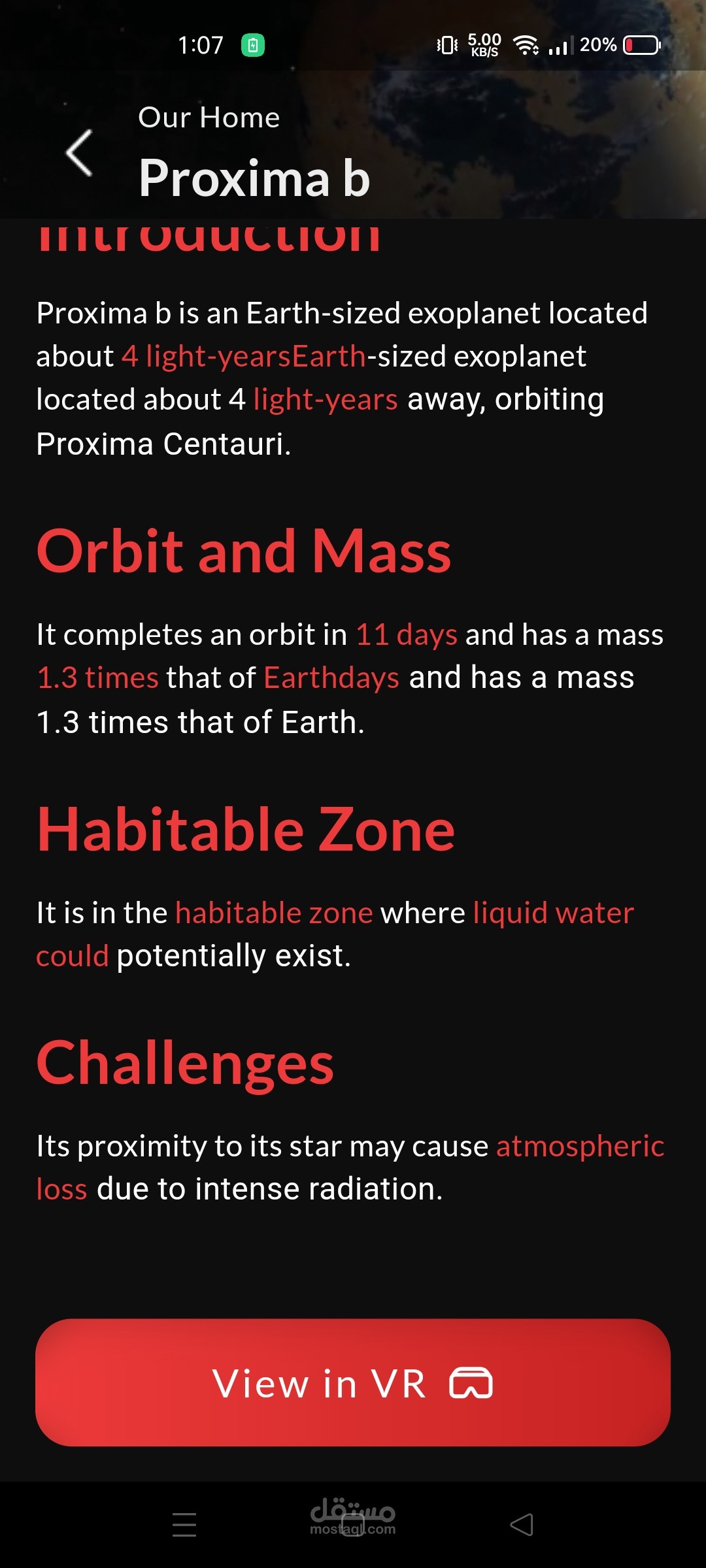 يحتوي التطبيق على مكتبة غنية من المعلومات العلمية حول الكواكب الخارجية، بما في ذلك حجمها، تكوينها، مداراتها، وخصائصها الفيزيائية. يتيح ذلك للمستخدمين فهم التنوع الموجود في الكواكب البعيدة ومساعدتهم في التعرف على المفاهيم الفلكية الأساسية.
