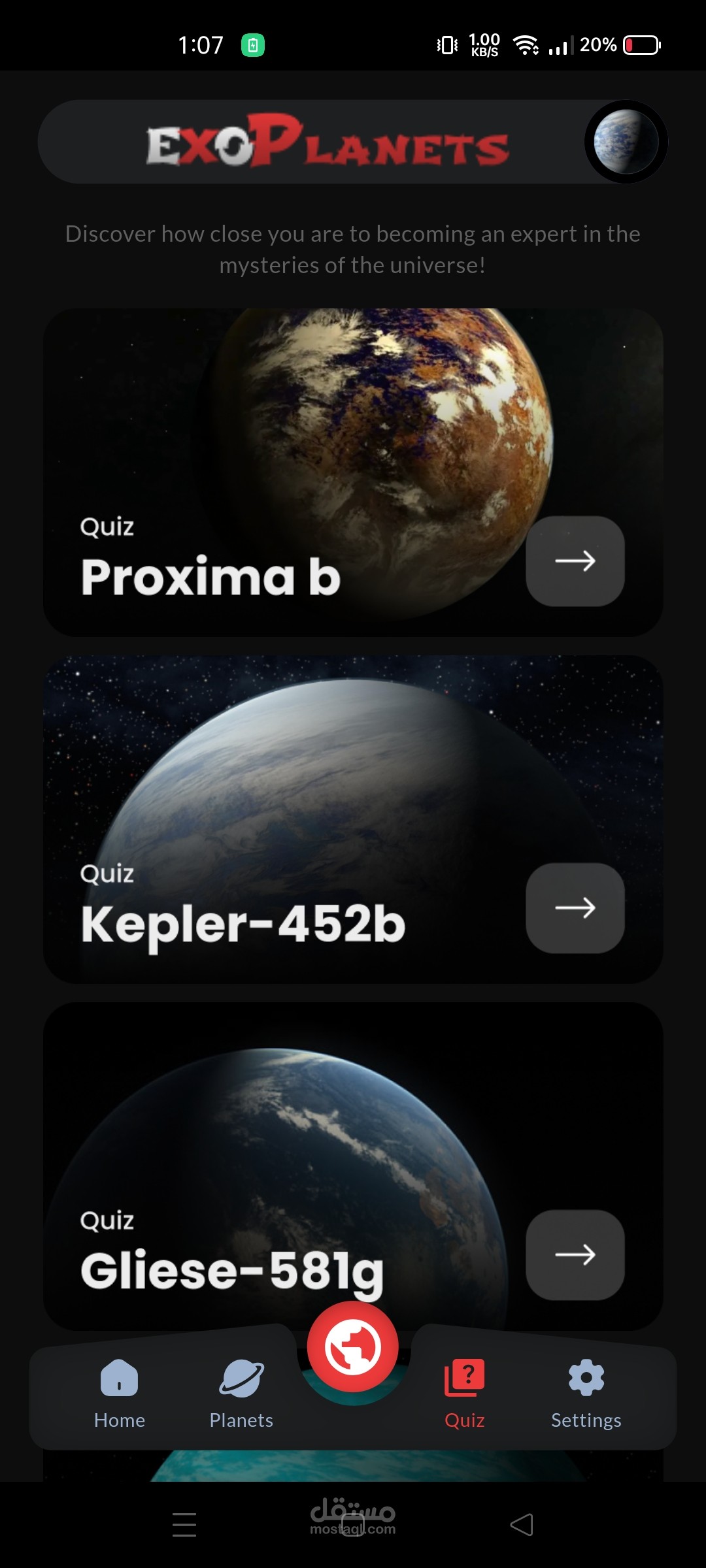 يتضمن التطبيق مجموعة من الاختبارات التفاعلية المصممة لتعزيز المعلومات المكتسبة. هذه الاختبارات تساعد المستخدمين على تقييم معرفتهم حول الكواكب الخارجية وتطبيق ما تعلموه بطريقة ممتعة.
