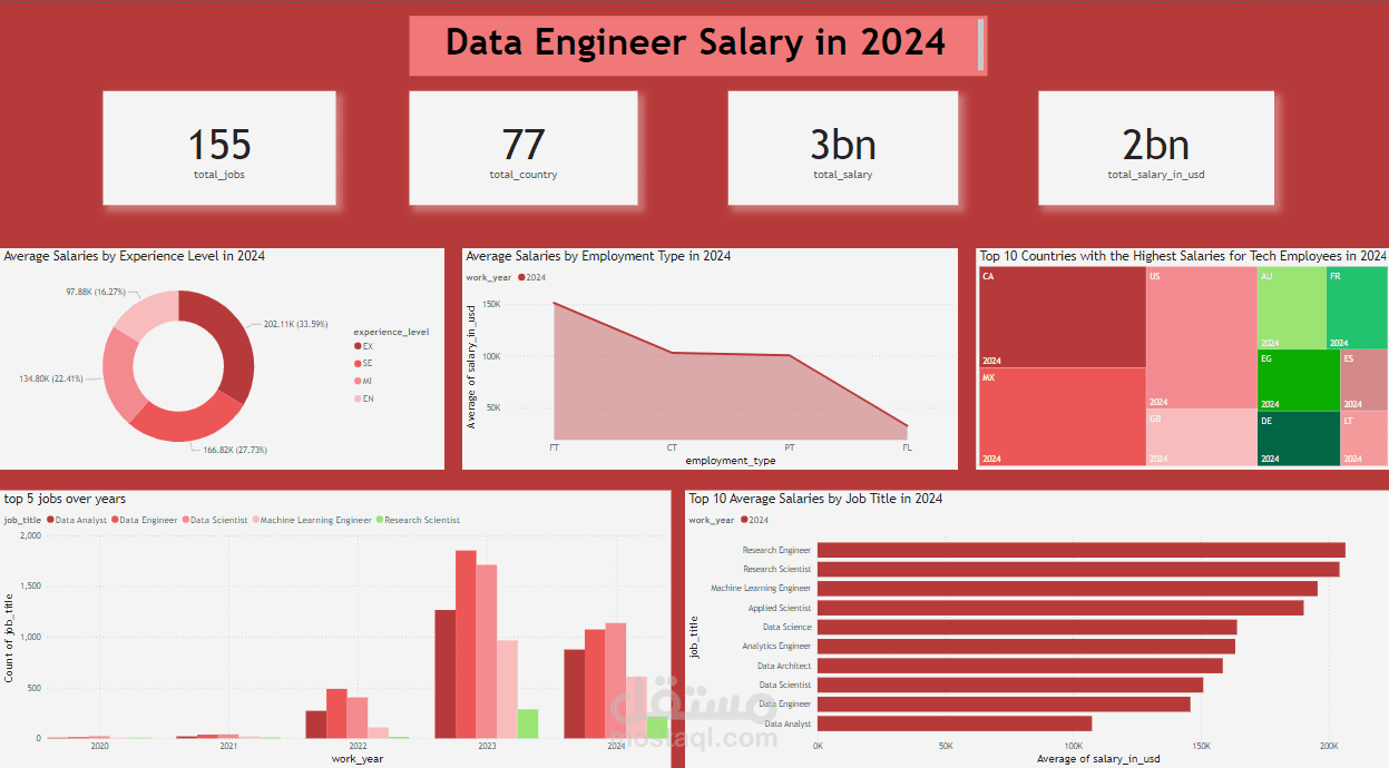 This project provides a detailed analysis of data engineer salaries worldwide in 2024. Using Power BI, I developed an interactive dashboard that visualizes key metrics and insights, such as: