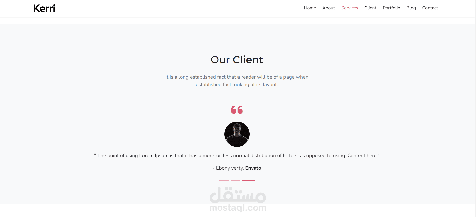 "كيري" هو موقع ويب متجاوب تم تطويره باستخدام تقنيات HTML5 وCSS3 وBootstrap، مع إضافة تأثيرات سلسة وحيوية باستخدام مكتبة AOS للرسوم المتحركة وAnimate.css. الموقع يتميز بتصميم أنيق وتفاعلي يتوافق مع جميع الأجهزة، ويوفر تجربة مستخدم سلسة من خلال التنقل السلس والانتقالات المتحركة الجذابة.